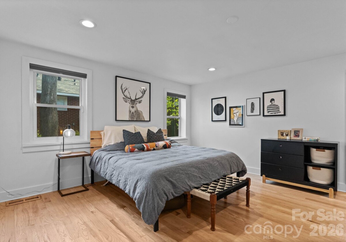 Welcome to your beautifully updated 3 bedroom, 2 bath home in one of Charlotte's hottest neighborhoods! This move-in ready gem combines modern upgrades with everyday comfort, offering a bright, open layout perfect for both relaxing and entertaining. The updated kitchen features quartz countertops, soft-close cabinets, SS appliances and an easy flow to the main living area. The primary retreat features a large bedroom + additional nook for exercise equipment or various hobbies. It flows seamlessly into an enormous en-suite, walk-in closet and a spacious bathroom with large soaking tub, frameless glass shower & dual modern vanity with custom lighting that can be changed for your mood! Beautiful hardwoods throughout, including the two additional light-filled bedrooms. Extra spacious utility room for laundry, storage or whatever needs you may have. Fully fenced backyard oasis with deck and tons of privacy - so rare for a home in the heart of it all! Roof replaced in Fall of 2024 with warranty. High end Jennair downdraft range + new water heater in Fall of 2025. Just minutes from Park Road Shopping Center, grocery shopping, dining, retail + you have a neighborhood park and easy access to the greenway! Five minutes from Southend, ten minutes to Uptown or Southpark! This is a gem of a neighborhood and homes here do not last long.
