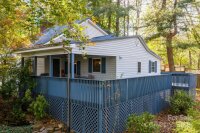 A Hidden Gem in the City like this is hard to find especially on a quiet dead-end street. This low maintenance, well maintained vinyl home was custom built by a true craftsman and sits gracefully on a hill surrounded by mature trees, offering peace and seclusion just minutes from Town. Featuring 3 bedrooms and 1.5 baths, this home includes a detached garage and packing shed, along with a covered front porch that flows onto a sun deck perfect for relaxing or entertaining in privacy. Inside, you’ll find cathedral ceilings, gas logs, and an open staircase leading to a spacious loft. Tile and wood floors (no carpet), and custom built cabinetry throughout reflect quality craftsmanship and thoughtful design. Generous laundry room with sink, and a comfortable den for gatherings. The exterior deck is overlooking a lovely waterfall feature and landscaped yard that’s both beautiful and easy to maintain. The double garage has an upstairs workshop or could be used as a bonus room and it is wired and ready for your projects. All this just minutes from shopping, schools, and Hwy 321 makes this property the perfect blend of privacy, convenience, and quality craftsmanship.