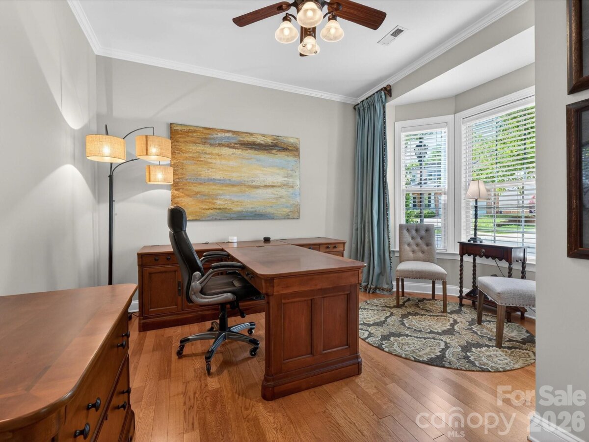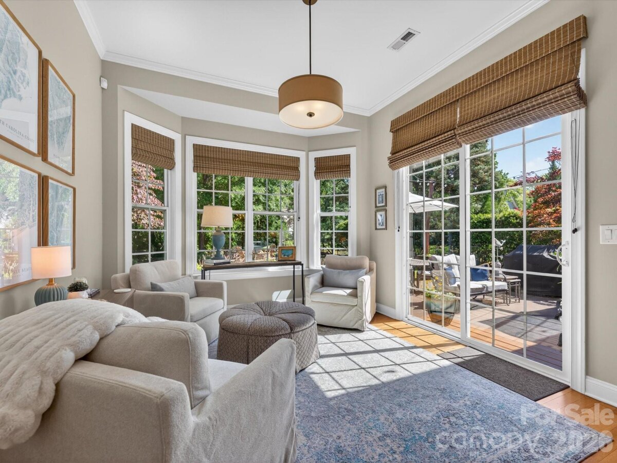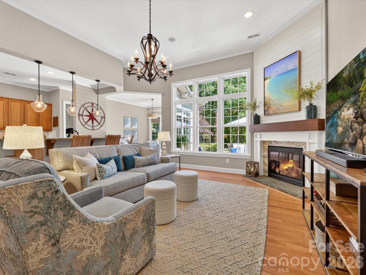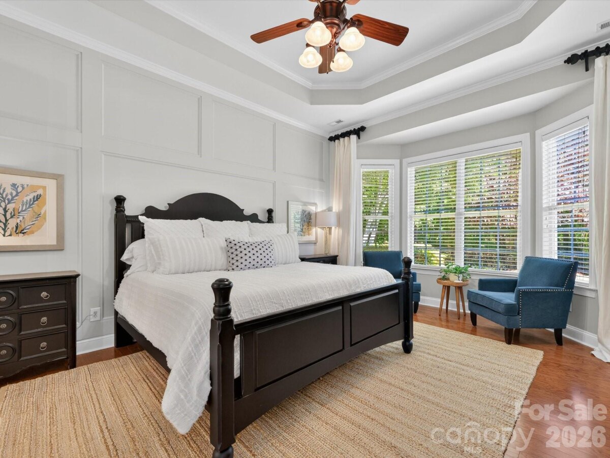 If you have been waiting for the perfect ranch home on the perfect lot…this is it! The yard offers lush landscaping, a sprinkler system, landscape lighting, and a private backyard oasis that is fully fenced with an enlarged patio, fire pit with sitting wall, and borders the beautifully treed common area and walking trails. Featuring a versatile bonus room or 4th bedroom, 3.5 baths, and an office, this home offers exceptional craftsmanship with 12-foot ceilings, 10-foot doors, double trey ceiling, bay windows, and barrel vaulted entryways. The one-owner home has been impeccably maintained and upgraded with a custom gas fireplace with cedar mantle, hardwoods on the main level, fully upgraded master bath (new flooring, countertops, lighting, mirrors, luxury shower panel with rainfall, waterfall, jets, and wand), granite counters in the secondary baths, custom Elfa brand shelving in all bedroom closets and pantry, new kitchen backsplash, surround sound, custom wall moldings, crown molding in all rooms, cedar columns, shiplap, a solid wood front door with six glass panels, and garage loft storage. Located in the highly sought-after Cuthbertson school zone this neighborhood offers resort style amenities (pool with waterslide, clubhouse, fitness center, playground, fishing pond, and miles of sidewalks and trails) and is located near shopping, restaurants, and medical facilities. Don’t miss your opportunity to own this amazing home! Note: breakfast area is currently being used as a sitting room.