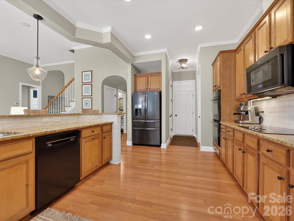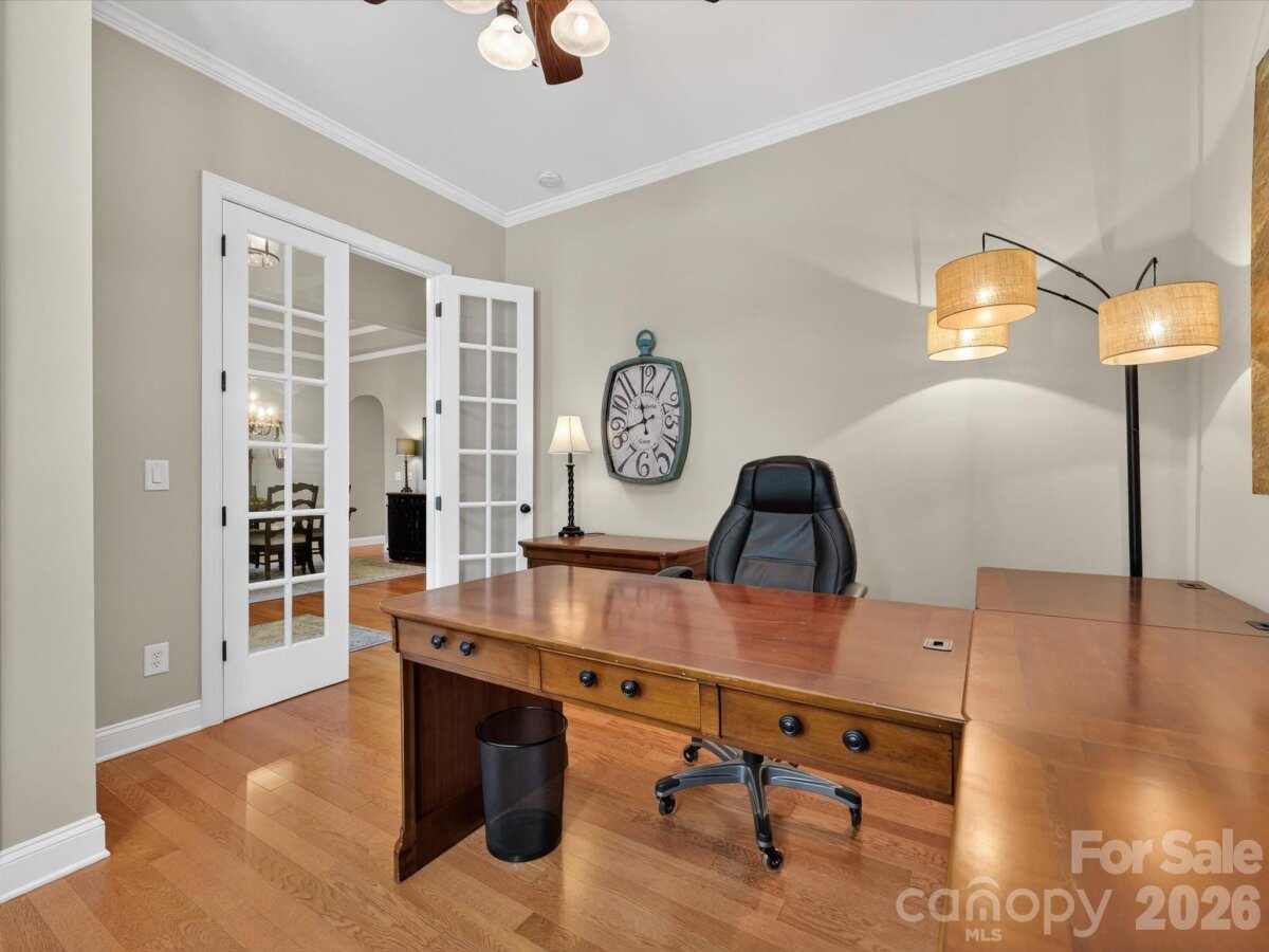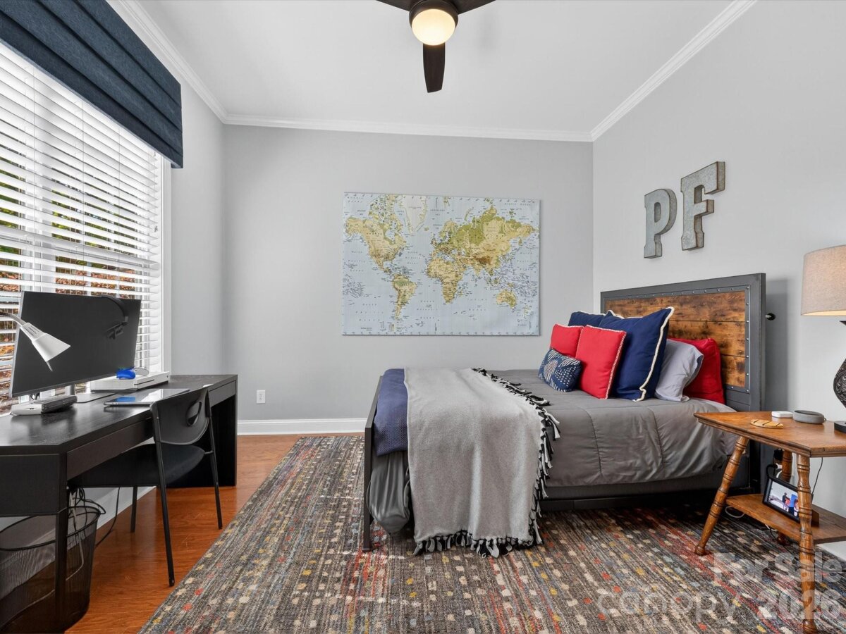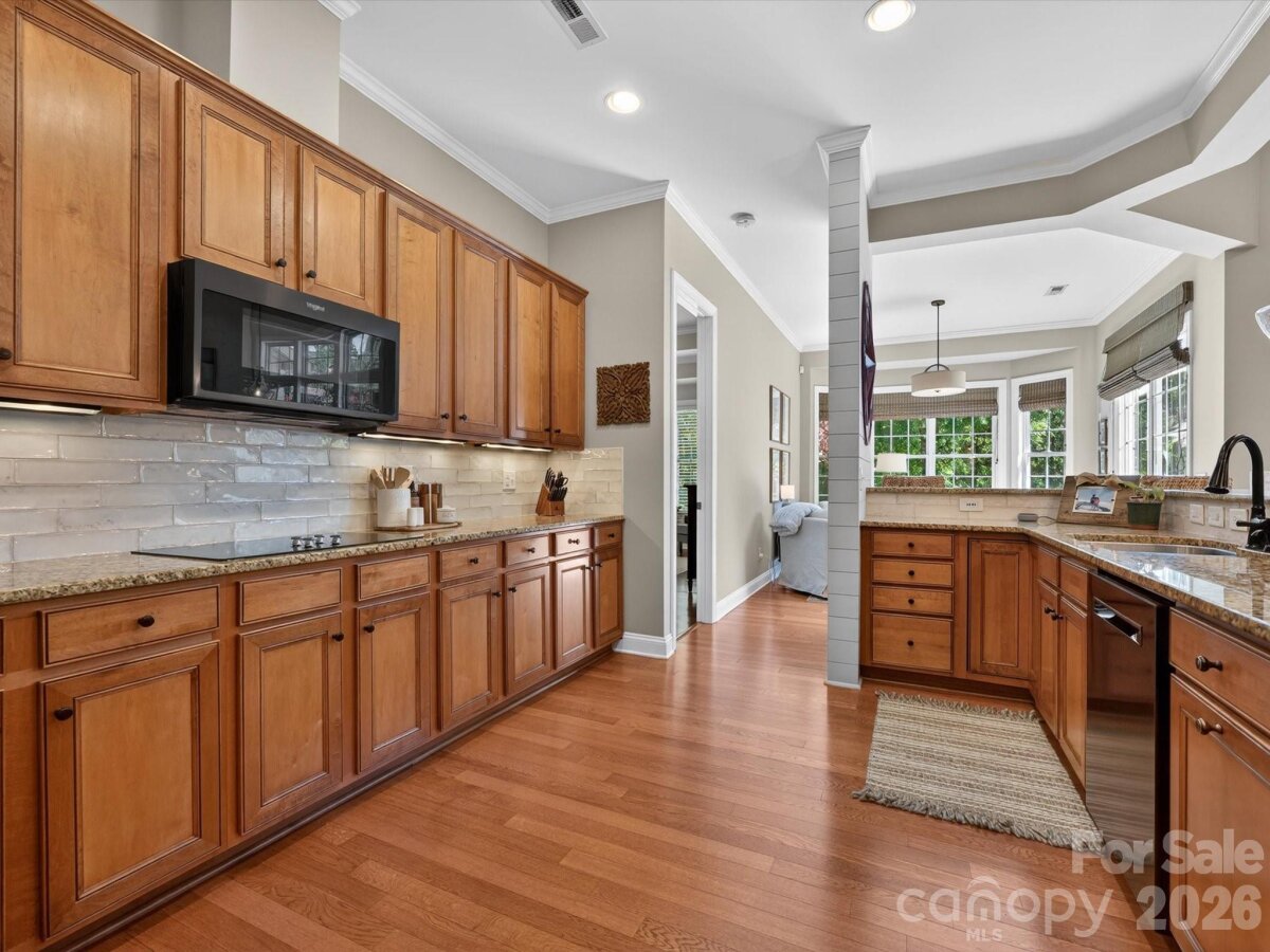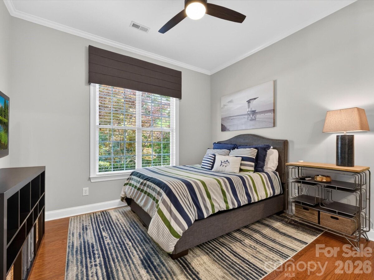 If you have been waiting for the perfect ranch home on the perfect lot…this is it! The yard offers lush landscaping, a sprinkler system, landscape lighting, and a private backyard oasis that is fully fenced with an enlarged patio, fire pit with sitting wall, and borders the beautifully treed common area and walking trails. Featuring a versatile bonus room or 4th bedroom, 3.5 baths, and an office, this home offers exceptional craftsmanship with 12-foot ceilings, 10-foot doors, double trey ceiling, bay windows, and barrel vaulted entryways. The one-owner home has been impeccably maintained and upgraded with a custom gas fireplace with cedar mantle, hardwoods on the main level, fully upgraded master bath (new flooring, countertops, lighting, mirrors, luxury shower panel with rainfall, waterfall, jets, and wand), granite counters in the secondary baths, custom Elfa brand shelving in all bedroom closets and pantry, new kitchen backsplash, surround sound, custom wall moldings, crown molding in all rooms, cedar columns, shiplap, a solid wood front door with six glass panels, and garage loft storage. Located in the highly sought-after Cuthbertson school zone this neighborhood offers resort style amenities (pool with waterslide, clubhouse, fitness center, playground, fishing pond, and miles of sidewalks and trails) and is located near shopping, restaurants, and medical facilities. Don’t miss your opportunity to own this amazing home! Note: breakfast area is currently being used as a sitting room.