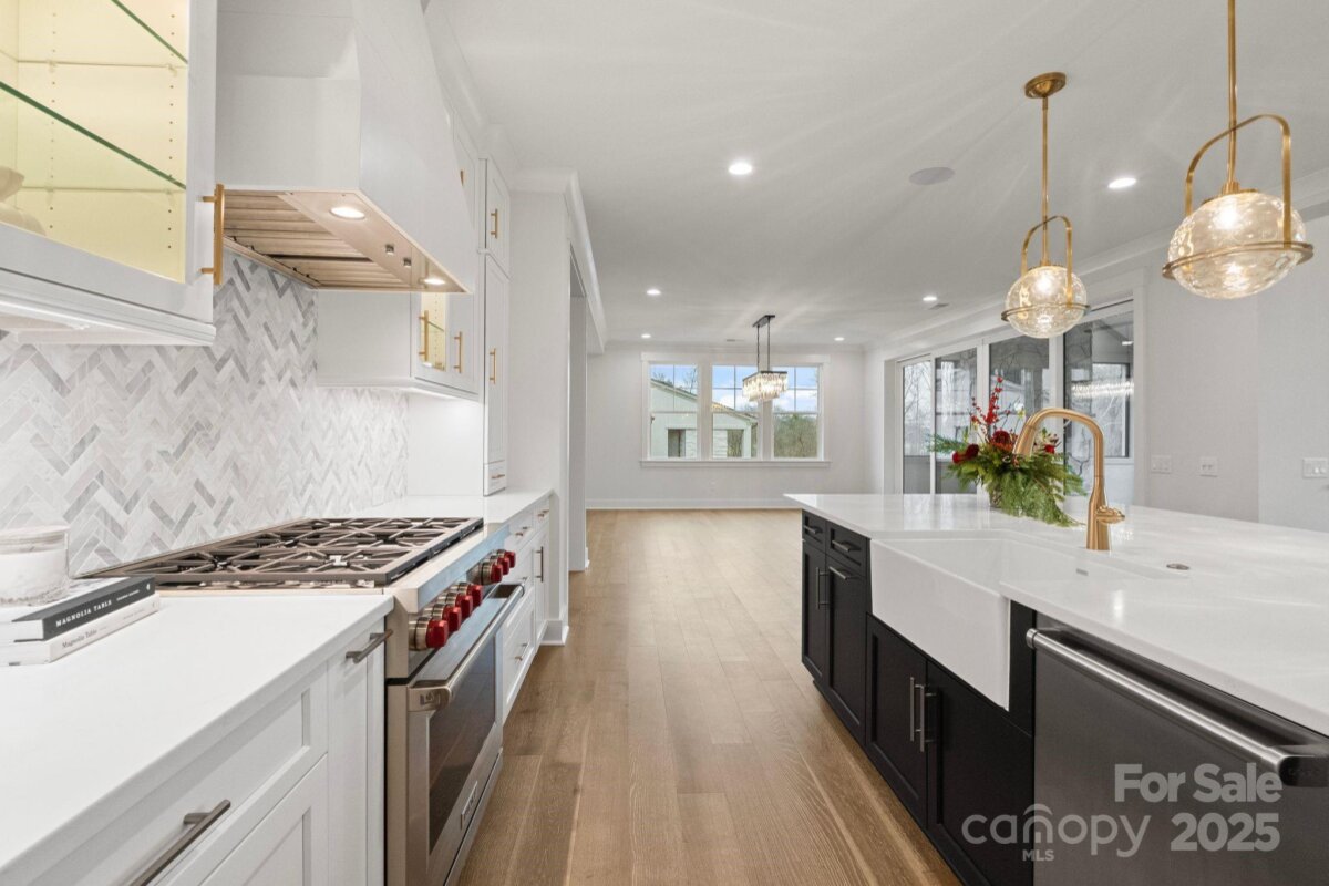 Just completed, custom-built luxury home located in a brand-new upscale neighborhood and featuring the highly sought-after Solana floorplan. This stunning residence is under full builder warranty and has been pre-inspected for added peace of mind. Exceptional craftsmanship is showcased throughout with wide-plank wood flooring, extensive custom millwork including grid accent walls and board-and-batten detailing, and elevated designer lighting. The open-concept layout is ideal for both everyday living and entertaining. The gourmet kitchen includes a Wolf gas range, Wolf wall ovens, Sub-Zero refrigerator, quartz countertops, custom soft-close cabinetry, and a massive center island. A separate scullery adds convenience with an additional sink, ice maker, beverage refrigerator, custom cabinetry, and quartz workspace. The kitchen flows seamlessly to the open dining area and the spacious great room featuring a soaring ceiling and gas-log fireplace. The main-level primary suite offers a cathedral ceiling, a charming seating bump-out, and a spa-inspired bath with a jewel-box shower with rain head, dual vanities, and large custom-built closets. Two additional main-level bedrooms each include private en-suite baths. The upper level features a large recreation room with a custom wet bar complete with a sink, microwave, beverage refrigerator, quartz countertop, and beautiful cabinetry. Two versatile flex rooms offer endless possibilities—perfect for a private office, den, gym, or hobby room. An additional bedroom with its own en-suite bath completes the upstairs layout along with generous walk-in attic storage. Enjoy year-round outdoor living on the covered rear porch equipped with a remote-controlled screen system for instant conversion to a screened space, plus a stone gas-log fireplace and built-in heater for cozy evenings. Located in an upscale newly developed community near scenic nature trails and just minutes from Birkdale Village, this home blends exceptional luxury, thoughtful design, and an unbeatable location.