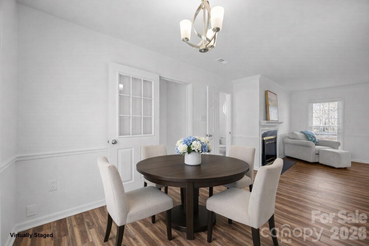 Tucked away on a private, fully fenced 39-acre wooded lot, this home is a true sanctuary, offering the perfect blend of seclusion and convenience. Surrounded by mature trees, this thoughtfully updated home provides a peaceful retreat from the hustle and bustle of daily life, while still being just minutes from the vibrant Arboretum, charming downtown Matthews, and top-rated schools. Inside, natural light fills every room, creating an inviting and warm atmosphere throughout. The spacious living areas are designed for both everyday comfort and gracious entertaining, with a cozy fireplace featuring new gas logs (2021) as the heart of the main living space. The flexible main-level room with its own private entrance and access to a full bathroom offers endless possibilities, ideal as a guest suite, home office, creative studio, or multigenerational living space. The formal living and dining rooms offer additional options, allowing you to adapt the home to your lifestyle. Recent updates provide peace of mind: a new water heater, HVAC, attic stairs, fresh interior paint, and updated flooring (2022), ensuring the home is move-in ready. Exterior improvements, such as new vinyl siding, windows, and doors, provide added durability and efficiency, and all appliances are less than five years old. Outside, the freshly stained deck (2025) invites you to unwind, entertain, or enjoy a quiet meal in the serenity of your private wooded yard. Two additional outbuildings provide versatile storage or workspace, adding even more value to this exceptional property. Located in a welcoming, established neighborhood with no HOA, this home is more than just a place to live; it’s a place to thrive. Whether you’re looking for a retreat, a space for personal passions, or a family-friendly home, 8215 Schooner Ln offers a rare combination of privacy, flexibility, and unmatched convenience. Don’t miss the opportunity to experience this special home. Contact us today to schedule your private showing and see how this home can be the perfect fit for your lifestyle.