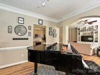 Welcome to this beautifully maintained three bedroom, two bathroom home with a spacious finished room over the garage. The inviting front patio offers the perfect spot to relax or greet friends and neighbors. Inside, a welcoming foyer opens into the great room, where tall ceilings and natural light create an airy, comfortable space. The great room flows seamlessly into the dining area and kitchen, designed for both everyday living and entertaining. LVP flooring and graceful archways add timeless architectural charm throughout. The kitchen offers generous counter space of Silestone Quartz, updated neutral finishes, and a pass-through opening to the great room so you can stay connected while preparing meals. The family room has custom built in cabinetry/shelving and a gas fireplace. The primary suite includes a walk-in closet and a serene ensuite bath featuring a soaking tub, a separate standing shower, and ample space to unwind. The secondary bedrooms are equally well-kept, with the second bathroom tastefully updated with a new vanity & tile flooring. Upstairs, the versatile upper 4th bedroom/flex space can serve as an office, playroom, or media space. The 12 x 14 screen porch is amazing! From there step right outside to a thoughtfully designed and quite oasis of a backyard, surrounded by trees, truly offering something for everyone. A screened-in porch provides a peaceful retreat, while the extended patio is perfect for grilling or gathering with friends. Additional features include a stone patio area, raised garden beds ready for veggie plants, mature landscaping and a wired 10 x 16 out building. The home is ideally located just steps from the neighborhood pool and playground, and provides convenient access to Charlotte Hwy., making commutes to Charlotte, Ballantyne, Fort Mill, or Lancaster simple and efficient. Also just minutes from this property is the new Target and Costco Hub, opening in just a few months.