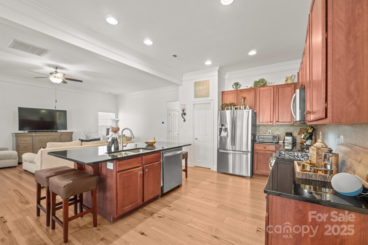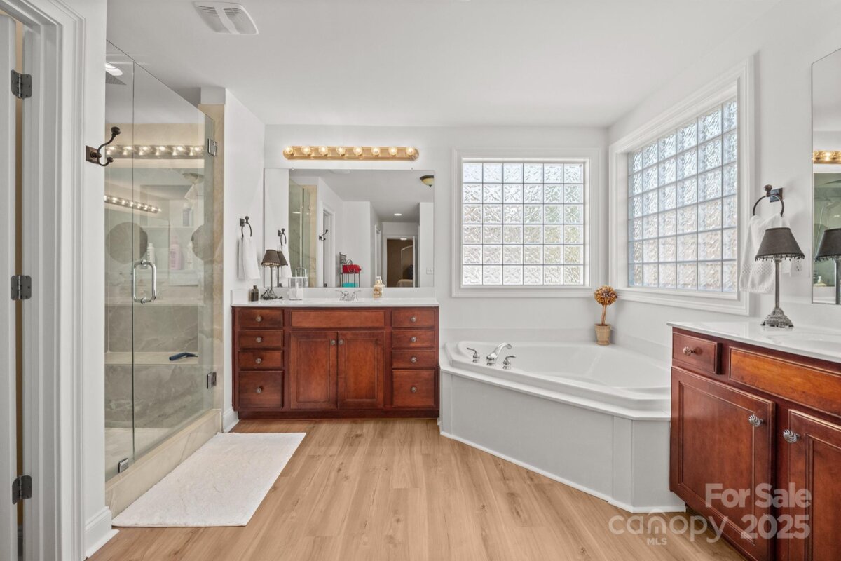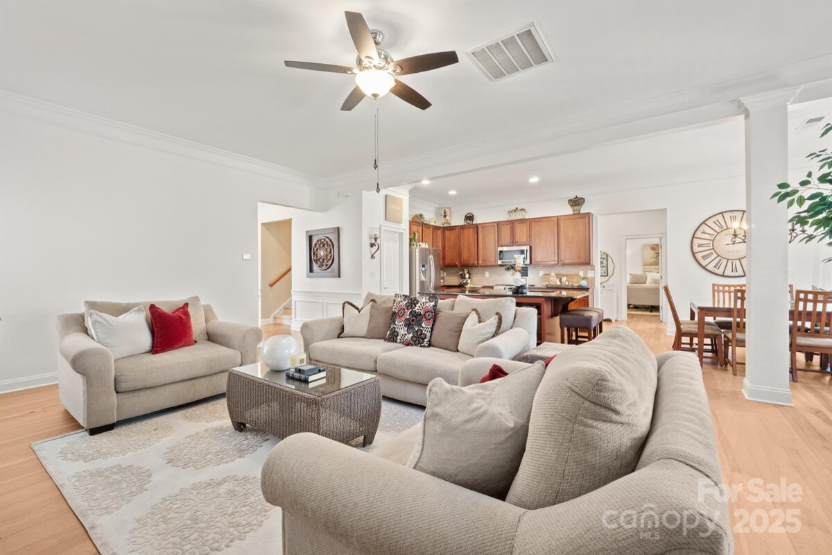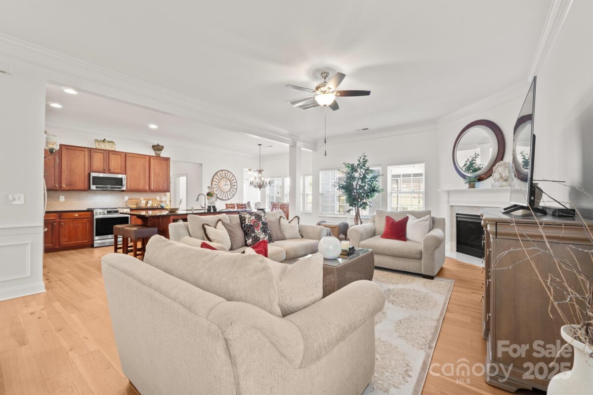 Welcome Home to 8219 Cottsbrooke Drive, Huntersville, in the highly sought-after MacAulay neighborhood! Step into this stunning home with grand entry hall accented by wide-plank hardwood floors and upgraded trim package. A private office sits just off the foyer, while the elegant dining room impresses with tray ceiling and designer wainscoting. The inviting family room with gas fireplace flows seamlessly into the kitchen, breakfast area and sun room—perfect for entertaining. The chef’s kitchen features granite countertops, tile backsplash, stainless appliances with gas range, a huge island with book-end bar seating, and a generous walk-in pantry. A main-level bedroom and full bath with designer tile shower and rain shower head offer convenience and style. The luxurious primary suite boasts a tray ceiling, private sitting area, dual closets, and spa-like bath with dual vanities, garden tub, and updated custom designer tile shower. Oversized bonus room and open stairwell provide space and comfort throughout. Enjoy outdoor living with an extended patio, screened gazebo, and fenced rear yard and rear gate – short cut to Grand Oak Elementary! MacAulay offers resort-style amenities including clubhouse, pool with slides, tennis, playgrounds, scenic walking trails and sidewalks connecting to Birkdale’s golf, dining, and shopping.