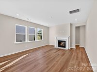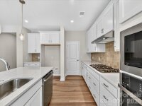 Bright and open Henderson home featuring a gourmet kitchen with white cabinetry, quartz countertops, cream backsplash, and brushed nickel hardware. First floor includes a gas fireplace and seamless indoor-outdoor living with sliding glass doors to a 12 by 8 covered patio. Upstairs primary suite offers tray ceiling, en suite bath, and walk-in closet. Cobblestone-inspired brick exterior, prime corner homesite, and quick access to the community activity lawn complete this move-in-ready home.