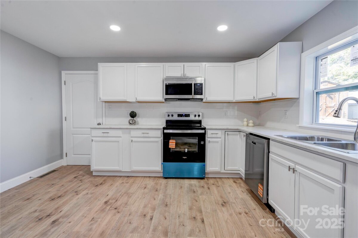 Welcome to 823 1st Street, a move-in ready 2-bedroom, 1-bath home sitting on a .21-acre lot with a nice driveway and plenty of outdoor space. Inside, you’ll find new waterproof laminate wood flooring, fresh interior paint, and ceiling fans throughout.Enjoy peace of mind with a new roof and new windows. The kitchen has been fully updated with new cabinets, new countertops, and stainless steel appliances — including a refrigerator with ice maker, dishwasher, stove, and microwave. The bathroom features modern tile finishes, a stylish vanity, and a faucet with LED lighting that adds a unique touch. The primary bedroom offers a spacious closet for extra storage. Easy access to Charlotte and Shelby via highway 74 and l-85. Close to Two Kings Casino this home blends comfort, quality, and convenience — perfect for first-time buyers or investors!