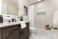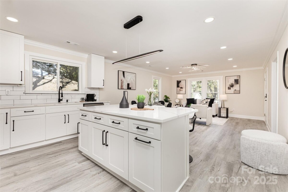 Completely remodeled ranch-style gem in the heart of Shelby! Welcome to 823 Frederick Street, a beautiful and fully renovated 3-bedroom, 2-bath cottage that blends modern style with timeless charm! Every inch of this home has been thoughtfully updated: NEW walls, insulation, siding, doors, electrical, plumbing, flooring, kitchen, bathrooms, concrete driveway, 2025 water heater, 2022 HVAC, 2018 roof, etc. From the moment you arrive, you’ll be greeted by the home’s charming covered front porch, new concrete driveway, and fresh landscaping. Step inside to a bright open floor plan featuring luxury vinyl plank flooring, recessed lighting, crown molding, and a spacious living area that flows seamlessly into the dining area and kitchen, making it ideal for entertaining or cozy nights at home. The stunning brand-new kitchen is a showstopper, featuring white shaker-style cabinets, quartz countertops, stainless steel appliances, an elegant backsplash, and an oversized island perfect for meal prep or casual dining. The large primary suite offers a relaxing retreat with a private en-suite bathroom featuring custom tilework, a sleek double-sink vanity, an LED anti-fog mirror, and a spacious walk-in shower. Two additional spacious bedrooms share an updated full bathroom complete with a beautiful vanity with an LED anti-fog mirror and a bathtub surrounded by elegant subway tile. Step outside and enjoy the peaceful setting from your new rear wood deck, perfect for weekend BBQs or morning coffee. The backyard offers plenty of space for gardening, play, or creating your own outdoor oasis. Every major system has been replaced or updated, giving you peace of mind for years to come.
