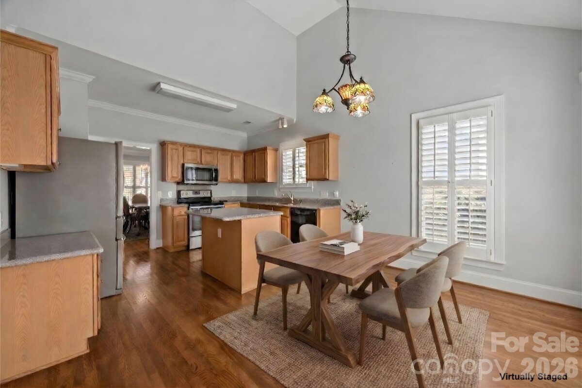 If you’ve been dreaming of a home with a stunning screened porch and sun-filled spaces, 824 Garbow Court is the one you’ve been waiting for. Tucked on a quiet cul-de-sac in sought-after Beverly Crest, this home offers a warm and inviting feel from the moment you walk in. Sunlight fills the space, beautifully complemented by plantation shutters throughout, creating a polished yet comfortable atmosphere. The thoughtfully designed layout flows easily, making both everyday living and entertaining feel natural and effortless. The kitchen connects seamlessly to the main living areas, so you’re always part of the moment, whether hosting friends or enjoying a quiet evening at home. Just beyond, the true showstopper awaits, an incredible screened porch that extends your living space outdoors. This is where mornings begin, evenings unwind, and weekends are meant to be enjoyed. The main-level primary suite offers a peaceful retreat, complete with dual closets, vaulted ceilings, and a beautifully updated bathroom featuring fresh, timeless finishes that elevate your everyday routine. Upstairs provides additional living space and flexibility, enhanced by brand-new carpet that adds a fresh, move-in-ready feel throughout. You’ll also find a spacious walk-in attic, offering exceptional storage and future potential - an incredibly valuable feature that’s hard to find. Step outside to a private backyard setting, perfect for relaxing, entertaining, or simply enjoying the quiet surroundings. Located in sought-after Beverly Crest, you’ll enjoy a true sense of community along with amenities including a pool, clubhouse, tennis and pickleball courts, and nearby walking trails—all just minutes from South Charlotte shopping, dining, and top-rated schools. If you’ve been searching for a home that feels inviting, lives beautifully, and offers standout features that truly enhance everyday life, 824 Garbow Court is one you don’t want to miss.