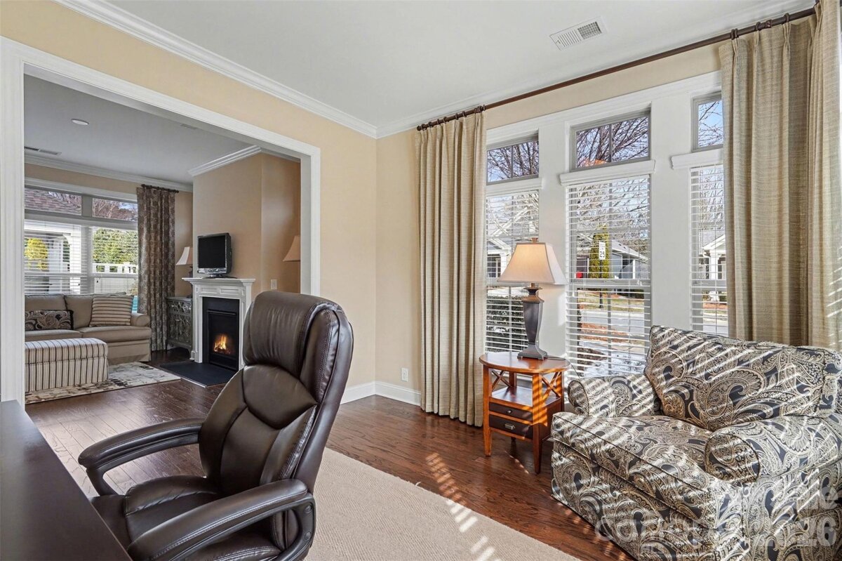 Beautifully bright and open corner unit home - classified as a condominium yet lives like a single family home. Located in The Courtyards of Huntersville, a stunning 55+ community, this home has everything you can want and is in the perfect location! Community is just down the road from Birkdale Village providing you endless shops & restaurants plus is just across the street from Lake Norman with boat access at Blythe Landing Park. This particular home sits across from the clubhouse with outdoor pool and quaint pond access. The stunning curb appeal ushers you in past the covered front porch and through the formal entry way. Entire main floor has hardwood floors and recessed lighting creating a modern open feel. On the right is a bright home office or sunroom - the perfect reading or piano area. Living room area is flooded with natural light from the full wall of windows plus a focal gas fireplace for cozy evenings. The gourmet kitchen is partially open to the living room and has main center island with bar seating + formal dining area to the side making it a great layout for hosting family & friends. Kitchen features matching S.S appliances and tons of rich wooden cabinets for plenty of storage. Primary bedroom on the main level has tray ceiling, spacious walk-in closet, and full attached bath with dual sinks & a step in corner stone shower for true luxury. Second full hall bath and bedroom perfect for guests. Upstairs features a large bonus room or bedroom 3 option with attached full bath. Enjoy relaxing no matter the season from your dual backyard living spaces including a covered patio w/ ceiling fan for hotter days and an open patio space for cooler gatherings. All fully fenced in with gate access to the corner space. This is one home you don't want to miss! Come make your next chapter of memories here!