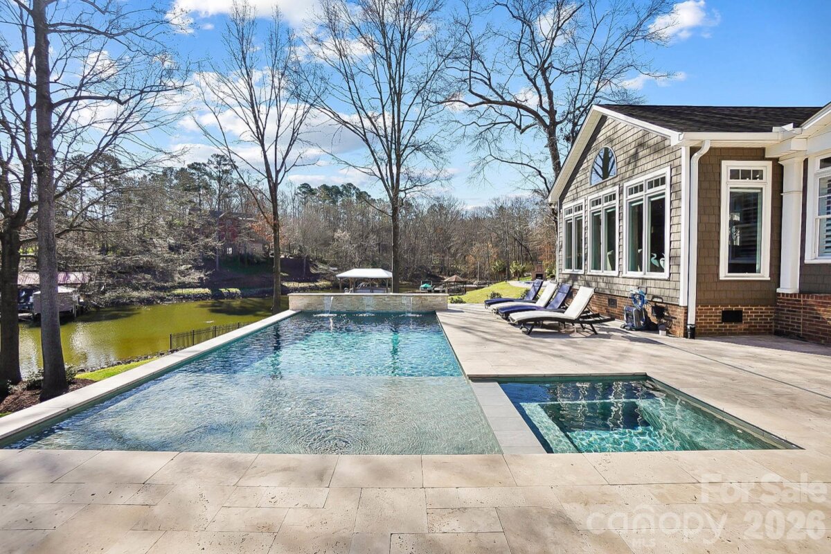 This is one of those rare Lake Wylie properties that seldom come available in this condition that offers the lake-house amenities you have been searching for. All you need to bring are your sunglasses and bathing suits because the rest is move-in ready. It is time to enjoy lake life in 2026. Set on a perfectly manicured lot overlooking a deep-water cove, this home enjoys beautiful views across to Daniel Stowe Botanical Gardens and the Carolina Thread Trail. Inside, you will find four bedrooms and four full baths, along with a stunning family room, kitchen, breakfast area, and second great room, all designed to take full advantage of the water views. The primary suite features a vaulted ceiling and a custom ensuite bath with a walk-in shower and jetted tub, again with amazing lake views. Upstairs, there is the 4th BR/ bonus room that can serve as an additional bedroom or flexible living space. From the moment you walk in, you will be impressed by how spotless and exceptionally maintained this home is. Step outside and enjoy the covered back porch, resort-style pool and spa, tanning ledge, custom water feature, and both poolside and lakeside outdoor fireplaces. Boat dock, with boat lift for jet skis or pontoon. Additional boat lift with no height restrictions for larger center consoles or wakeboard boats. This is a must-see property. Come experience life on Lake Wylie with convenient access to Charlotte Douglas International Airport, Uptown Charlotte, local hospitals, Gastonia, Belmont, Rock Hill, plus abundant shopping and dining options. This is truly one of the best opportunities to enjoy the Lake Wylie lifestyle! Come ready to be impressed!