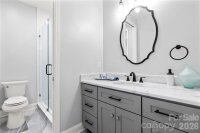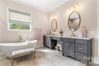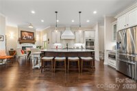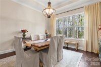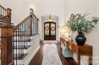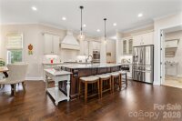 Welcome to this stunning two-story Mediterranean-inspired custom estate home, where timeless elegance meets modern comfort within a serene, private setting and over an acre of land. The grand double-door entry opens into an elegant foyer, where a private home office sits perfectly positioned at the front of the home - ideal for quiet productivity. Beyond, the residence unfolds into a breathtaking great room, highlighted by soaring 23-foot ceilings and a dramatic floor-to-ceiling stone fireplace with a solid wood mantle. The wall of windows floods the space with natural light, creating a warm and inviting atmosphere. Designed for both everyday living and entertaining, the open-concept layout flows seamlessly into a chef’s kitchen featuring an oversized island with seating, gas cooktop with hood, stainless steel appliances, tile backsplash, and under-cabinet lighting. Enjoy casual meals in the cozy breakfast nook - complete with its own stone fireplace - or host elegant dinners in the formal dining room adorned with a tray ceiling and chandelier. The main-floor primary suite is a true retreat, offering an oversized layout with tray ceiling and chandelier, along with a spa-inspired ensuite bath. Indulge in Italian marble flooring, a dual sink vanity, soaking tub, and an expansive walk-in shower with floor-to-ceiling tile. Throughout the home, you’ll find refined architectural details including graceful archways, custom cabinetry, solid core doors, and designer blinds. The thoughtfully designed laundry room features custom tile, a utility sink, and ample cabinetry for added convenience. Upstairs, a spacious loft and a large, finished bonus room provide flexible living space for recreation or relaxation. Two generously sized guest bedrooms share a beautifully appointed Jack-and-Jill bathroom with custom tile flooring. Step outside to the enclosed patio just off the great room, complete with a ceiling fan and peaceful wooded views that lead down to a quiet pond. Whether kayaking, fishing, or simply enjoying quiet evenings by the water, this property offers a rare connection to nature. Located within the exclusive Irongate community, residents enjoy gated access, scenic walking trails, and close proximity to Lake Wylie & Tega Cay. This exceptional home combines luxury, privacy, and thoughtful design - an extraordinary opportunity to experience elevated living.