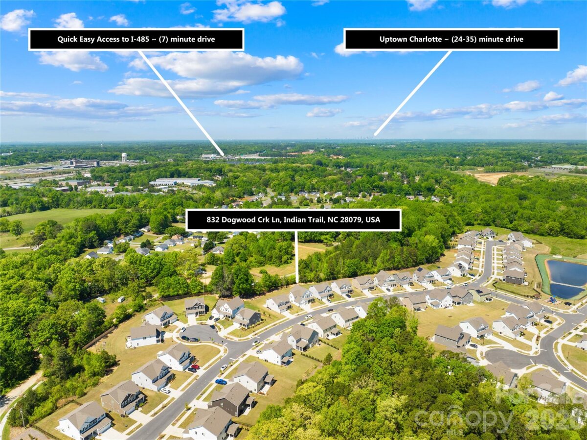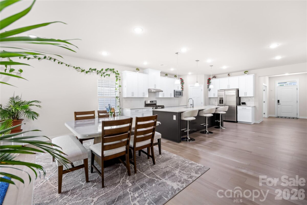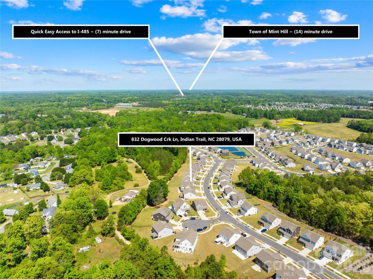 Move-in ready and like-new 2023-built home in the desirable Springshire Creek community, offering 3,378 square feet of thoughtfully designed living space with 5 bedrooms and 4 full baths, set on an approximately 0.25-acre lot with a private wooded backdrop. From the moment you arrive, the inviting front porch and spacious 3-car front-entry garage—featuring a professionally finished epoxy floor—set the tone for a home that blends curb appeal with everyday functionality. Step inside to a modern, open layout designed for both comfortable living and effortless entertaining. A private office with glass French doors creates the perfect work-from-home retreat, while the main-level guest suite with a full bath offers flexibility for visitors or multi-generational living. At the heart of the home, the expansive great room flows seamlessly into a beautifully appointed kitchen featuring quartz countertops, white cabinetry, tile backsplash, stainless steel appliances, a gas range with hood, a large island, and a walk-in pantry. The adjoining breakfast area is filled with natural light and opens toward the backyard, creating a seamless indoor-outdoor connection. Upstairs, the primary suite offers a spacious private retreat complete with dual walk-in closets and a well-appointed bath, providing both comfort and functionality. The secondary layout is thoughtfully designed, with one bedroom featuring its own attached full bath, while the remaining two bedrooms share a full hallway bath. A versatile loft and a conveniently located laundry room complete the upper level, offering flexibility for everyday living. Step outside into your own backyard retreat. A covered screened porch extends your living space year-round, while the extended concrete patio provides ample room for entertaining, dining, or simply relaxing while enjoying the peaceful wooded setting. Located in a quiet suburban setting, this home offers access to community amenities including a dog park, picnic area, playground, and walking trails. Conveniently situated near Highway 74 and I-485, with easy access to shopping, dining, Atrium Health Union, and downtown Monroe, and a short drive to Charlotte. Skip the construction delays and move-in ready stress—this like-new home is ready for you to enjoy from day one.