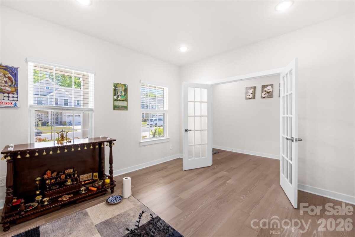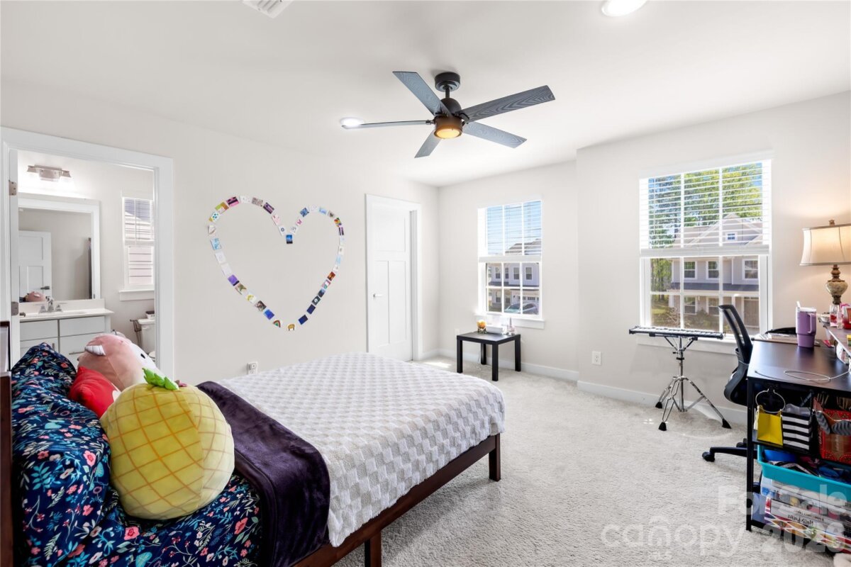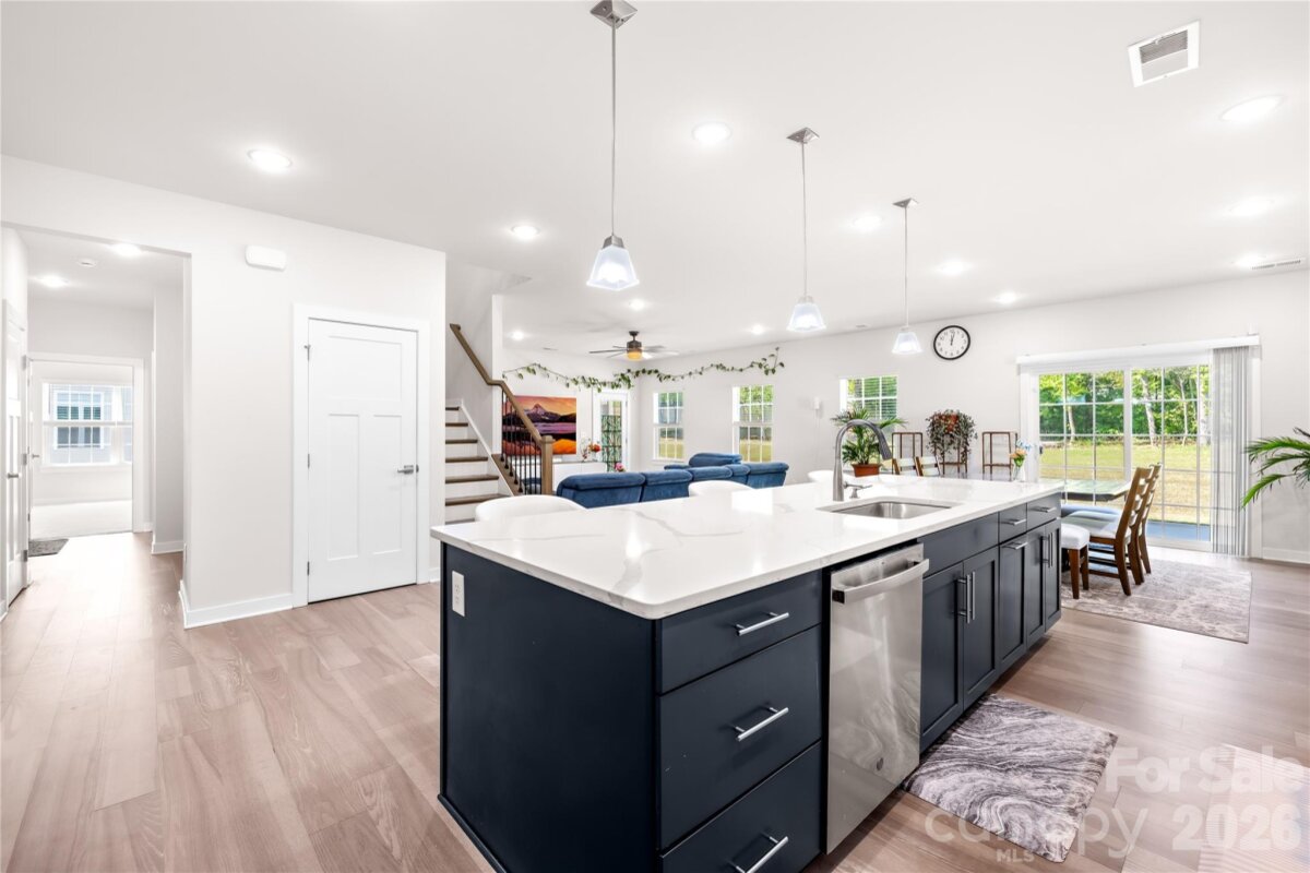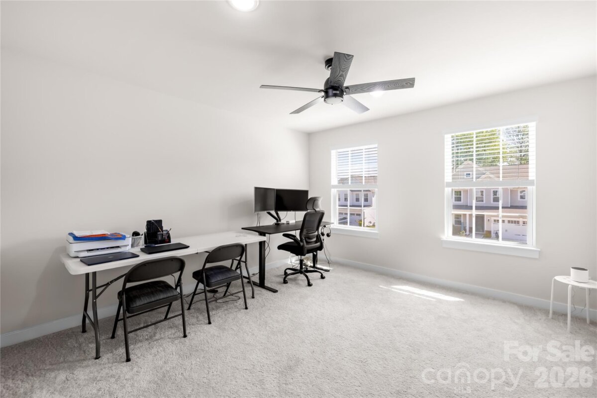 Move-in ready and like-new 2023-built home in the desirable Springshire Creek community, offering 3,378 square feet of thoughtfully designed living space with 5 bedrooms and 4 full baths, set on an approximately 0.25-acre lot with a private wooded backdrop. From the moment you arrive, the inviting front porch and spacious 3-car front-entry garage—featuring a professionally finished epoxy floor—set the tone for a home that blends curb appeal with everyday functionality. Step inside to a modern, open layout designed for both comfortable living and effortless entertaining. A private office with glass French doors creates the perfect work-from-home retreat, while the main-level guest suite with a full bath offers flexibility for visitors or multi-generational living. At the heart of the home, the expansive great room flows seamlessly into a beautifully appointed kitchen featuring quartz countertops, white cabinetry, tile backsplash, stainless steel appliances, a gas range with hood, a large island, and a walk-in pantry. The adjoining breakfast area is filled with natural light and opens toward the backyard, creating a seamless indoor-outdoor connection. Upstairs, the primary suite offers a spacious private retreat complete with dual walk-in closets and a well-appointed bath, providing both comfort and functionality. The secondary layout is thoughtfully designed, with one bedroom featuring its own attached full bath, while the remaining two bedrooms share a full hallway bath. A versatile loft and a conveniently located laundry room complete the upper level, offering flexibility for everyday living. Step outside into your own backyard retreat. A covered screened porch extends your living space year-round, while the extended concrete patio provides ample room for entertaining, dining, or simply relaxing while enjoying the peaceful wooded setting. Located in a quiet suburban setting, this home offers access to community amenities including a dog park, picnic area, playground, and walking trails. Conveniently situated near Highway 74 and I-485, with easy access to shopping, dining, Atrium Health Union, and downtown Monroe, and a short drive to Charlotte. Skip the construction delays and move-in ready stress—this like-new home is ready for you to enjoy from day one.