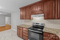 Welcome to this beautifully refreshed ranch home offering the perfect balance of modern comfort and quiet charm. Conveniently located just minutes from I-485, this property features an inviting layout with beautiful hardwood flooring, contemporary finishes, and abundant natural light throughout. The kitchen boasts nice cabinets, a clean tile backsplash, and generous counter space, creating the ideal space for cooking and entertaining. Enjoy your morning coffee or evening gatherings on the spacious deck overlooking a private, wooded backyard that provides a true sense of retreat. With thoughtful upgrades, timeless style, and an unbeatable location, this move-in-ready home is one you don’t want to miss!