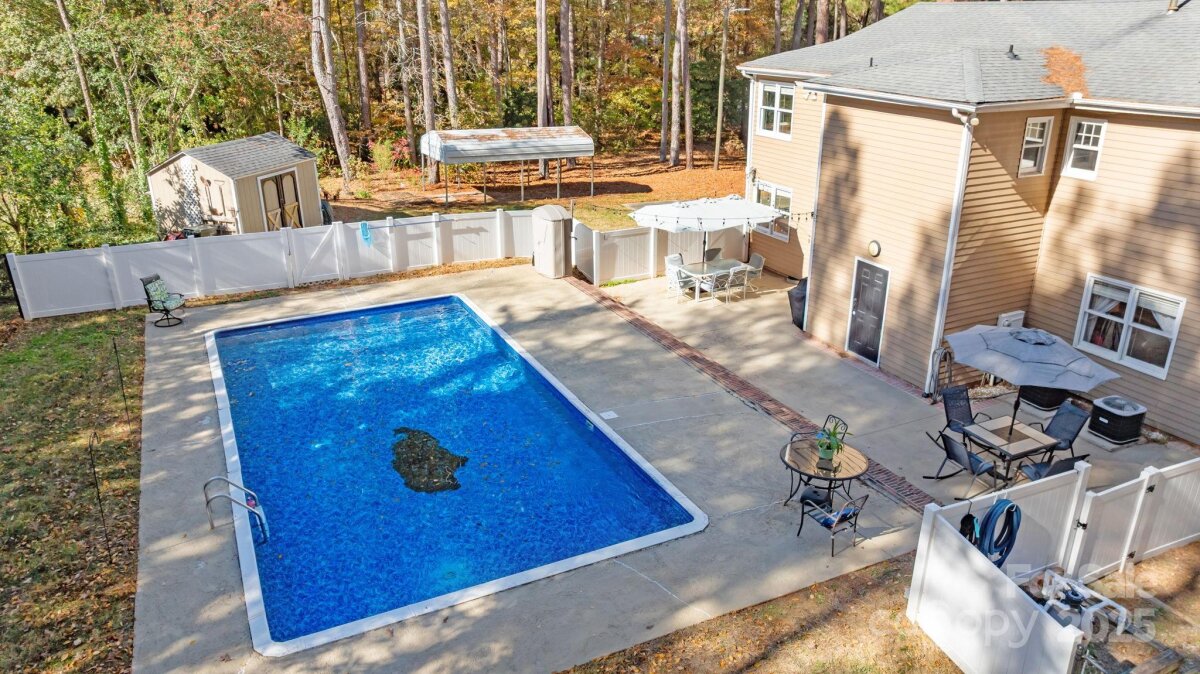 It's not often that the storybook home of your dreams reveals itself, complete with a welcoming wraparound porch, a sprawling front yard, and a shimmering pool that invites leisurely afternoons. This is it! Rich, deep layers of style and warmth flow throughout, creating an ambiance that beckons visitors, neighbors, and the laughter of holiday gatherings. On the main level, the large welcoming foyer opens up to the expansive parlor, and cozy sitting area. The light-filled den which opens gracefully to the kitchen and breakfast room, ensures a harmonious flow for entertaining and cherished moments. A thoughtfully placed half bath, laundry area, and storage room seamlessly connects to the backyard. As you ascend to the second floor you will discover four inviting bedrooms and two full baths, including a primary suite bathed in abundant natural light—an ideal retreat for daydreaming of your next adventure now that you’ve discovered your dream home. The absence of carpet enhances the airy ambiance, while new wide plank flooring adorns the upstairs, effortlessly blending comfort with sophistication. In the backyard, a spacious shed behind the carport stands ready to house all your gardening treasures. Here, you can surrender to the serenity of the outdoors, basking in the tranquility of the large pool, all within the secure embrace of a fenced yard, perfect for your cherished furry companions. Embark on a new chapter where your dream home transcends imagination and becomes a cherished reality. Perfectly situated in a peaceful neighborhood, this home is just 15 minutes from Allison Creek, historic downtown Rock Hill, the Giordana Velodrome, Ebenezer Park on Lake Wylie, Glencairn Gardens, and so much more—offering easy access to outdoor recreation, local dining, and the vibrant charm of Rock Hill.