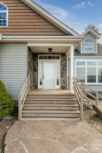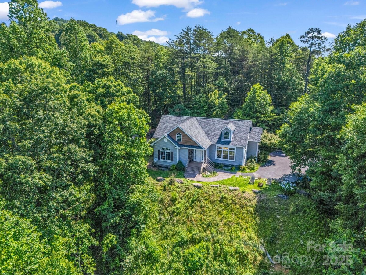Been looking for breathtaking mountain views close to a lake? Look no further! This home is a perfect escape from the daily grind of busy life & just a 20-minute drive to Lake James. Septic system designed for 2 bedrooms, though current owners utilized extra spacious upstairs flex rooms as additional bedrooms/play space. Main floor has 9' ceilings & large windows overlooking year-round mountain views. Main level open floor concept. Primary ensuite has double vanities & walk-in closet. Office, 2nd bedroom, full bath, laundry also on main. Kitchen boasts stainless steel appliances, new farm sink & quartz countertops, freshly painted cabinets. New well installed in 2024. Property has metal detached garage/workshop with electricity. While this is a private mountaintop home, location is convenient! Less than 10 minutes to Lowes, Ingles, dining, downtown shopping, interstate access. About 40 minutes to the Asheville Regional Airport.