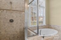 This custom-built, one-owner home offers timeless quality with 5 bedrooms and 4 full baths. The main level features a spacious primary bedroom with an ensuite and walk-in closet, a second bedroom, a second full bathroom, and a large laundry room for everyday convenience. Upstairs, three additional bedrooms each have full bath access and includes a dedicated office space ideal for working from home. The open living room flows seamlessly into the kitchen and boasts soaring cathedral ceilings and a gas fireplace, perfect for entertaining. The kitchen showcases granite countertops, abundant cabinetry, a walk-in pantry, and new GE appliances. A large bonus room above the garage, accessible by its own private staircase, provides flexible space. Major upgrades include a new roof (2025), Trane dual-fuel HVAC systems (2021), new carpet, and refreshed landscaping. Located just 25 minutes from downtown Charlotte and the Carolina Panthers’ Stadium, this home provides easy access to city amenities!