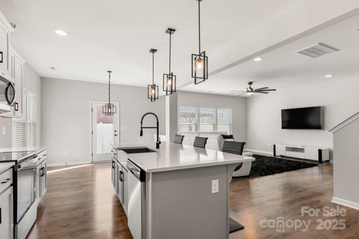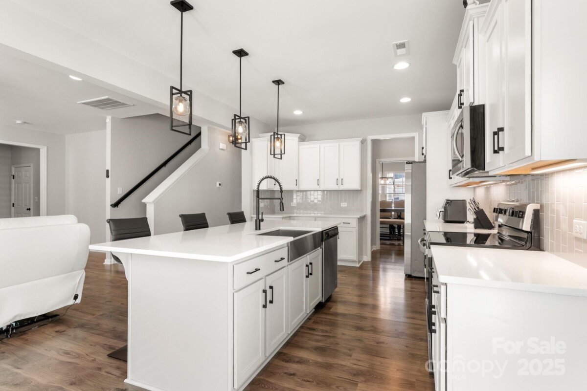 This meticulously maintained beauty is close to new and does not disappoint. There is no need to wait to build, home was built in 2023, so you just move right in. Once inside, the home shows like a model. The formal dining room could be used as an office or flex space and has French doors and another door leading to the breakfast bar area. The kitchen and living areas are open and airy. The island is large and definitely where you can gather at. Quartz countertops and stainless-steel appliances adorn the kitchen. Walk in pantry and a breakfast bar completes this Gourmet Kitchen. A flex space downstairs that could be used as a bedroom. The primary and two additional bedrooms are upstairs. There is a large laundry room upstairs with closet, and a functional bonus also. Fenced in backyard. One of the largest floorplans in this established neighborhood. This one is sure to impress in thriving York! Washer and dryer to convey with the home.