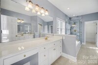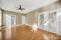 What a Find! Custom CF Little Home. This beautifully designed three-bedroom brick ranch offers a thoughtfully crafted layout focused on comfort, convenience, and easy living in the highly sought-after Clare Haven neighborhood. Step inside to an inviting open floor plan highlighted by arched doorways, rich site finished hardwood flooring, and a spacious Great Room designed for gathering and entertaining. The Great Room features a wall of windows overlooking the covered porch, a cozy gas fireplace, and custom built-ins, creating a warm and welcoming space that flows seamlessly into the kitchen. The kitchen offers white cabinetry and appliances, abundant cabinet and counter space, and a spacious eat-in area, perfect for casual dining or morning coffee. Open to the covered porch/deck A separate dining room with beautiful hardwood flooring provides flexibility and can easily serve as a home office, sitting room, or flex space to suit your needs.The split bedroom floor plan ensures privacy, with a serene Primary Suite featuring hardwood flooring and private access to the covered porch, overlooking the peaceful backyard. The updated primary bathroom includes dual vanities, a jetted soaking tub, and a stunning new walk-in shower with custom tile work, along with dual closets with built-ins.Two spacious secondary bedrooms with hardwood flooring share a Jack-and-Jill bathroom, providing both comfort and convenience. Outside, enjoy mature landscaping, a fenced backyard, and a covered porch and spacious deck perfect for relaxing or entertaining. Located in a quiet, walkable neighborhood, Clare Haven offers the perfect blend of peaceful living with convenient access to Harrisburg, Charlotte, shopping, dining, and major commuter routes.