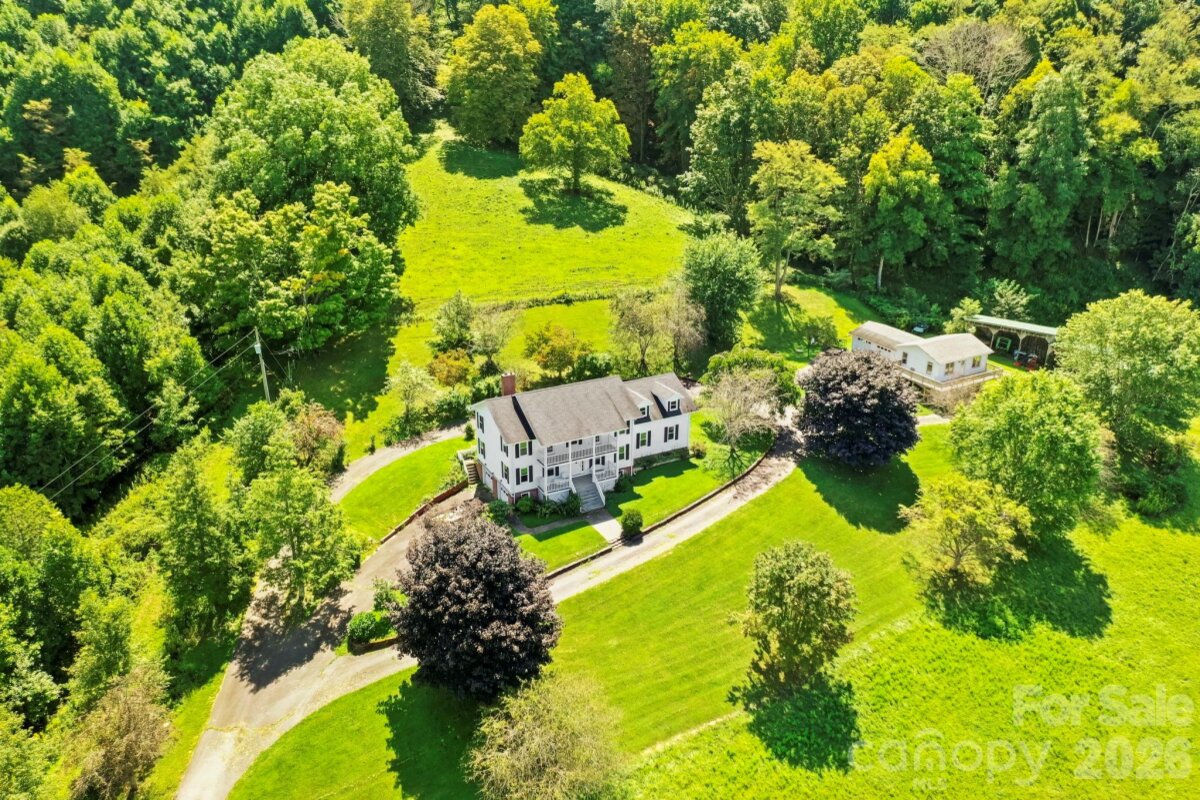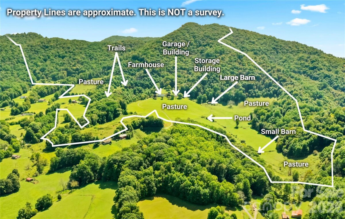 Apple Tree Farm - a rare offering of 240+ acres with a farmhouse, unfinished garage/building, storage building, two barns, and trails - with wooded acreage, sprawling pastures, and long-range, layered Blue Ridge Mountain views at high elevations. With the potential for many different uses, this is the perfect spot for a homestead, family estate/legacy property, horse property, working farm with farming opportunities, or investment opportunity with potential for development - no zoning and no restrictions! Offering easy access year-round from state-maintained roads, this property is just 15 minutes from Appalachian State University and amenities in Boone but offers ample privacy. The large farmhouse front porch is the perfect place for overlooking the green pastures, small pond, and mountains beyond - enjoy mother nature at her finest with acres and acres made for exploring and enjoying the cool Blue Ridge Mountain air! The 3 BR, 2.5 BA home, awaiting the right buyer to put their own personal touches, offers a living room, den, kitchen, and dining room on the first level - upstairs, find a large primary suite, two additional bedrooms, a full bath, and multiple bonus rooms. Additional features: central vacuum, recently replaced windows throughout, wormy chestnut kitchen cabinets, four garage bays, full basement with bathroom, high-speed internet. The farmhouse would also make a great guest home, with the opportunity to build on the acreage! The unfinished garage/building was originally intended as a garage with an apartment above and offers four additional garage bays. An open-air storage building is great for equipment or vehicle storage, and a large usable barn offers even more potential. Apple trees & wildflowers surround the farmhouse and a trail system runs through parts of the wooded acreage to pasture areas. The serenity of Apple Tree Farm lasts year-round with pastoral and sunset views overlooking the majestic Blue Ridge Mountains!