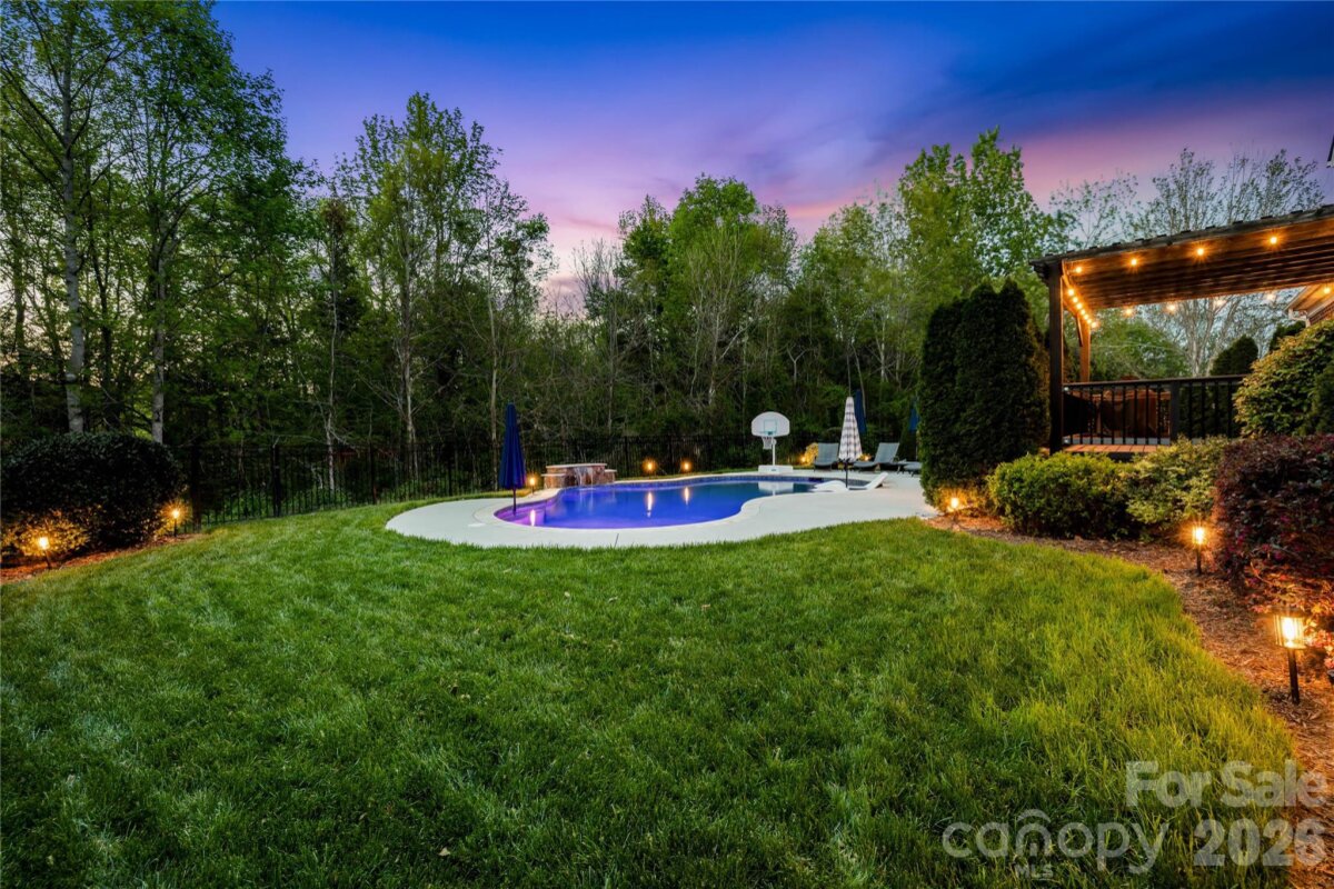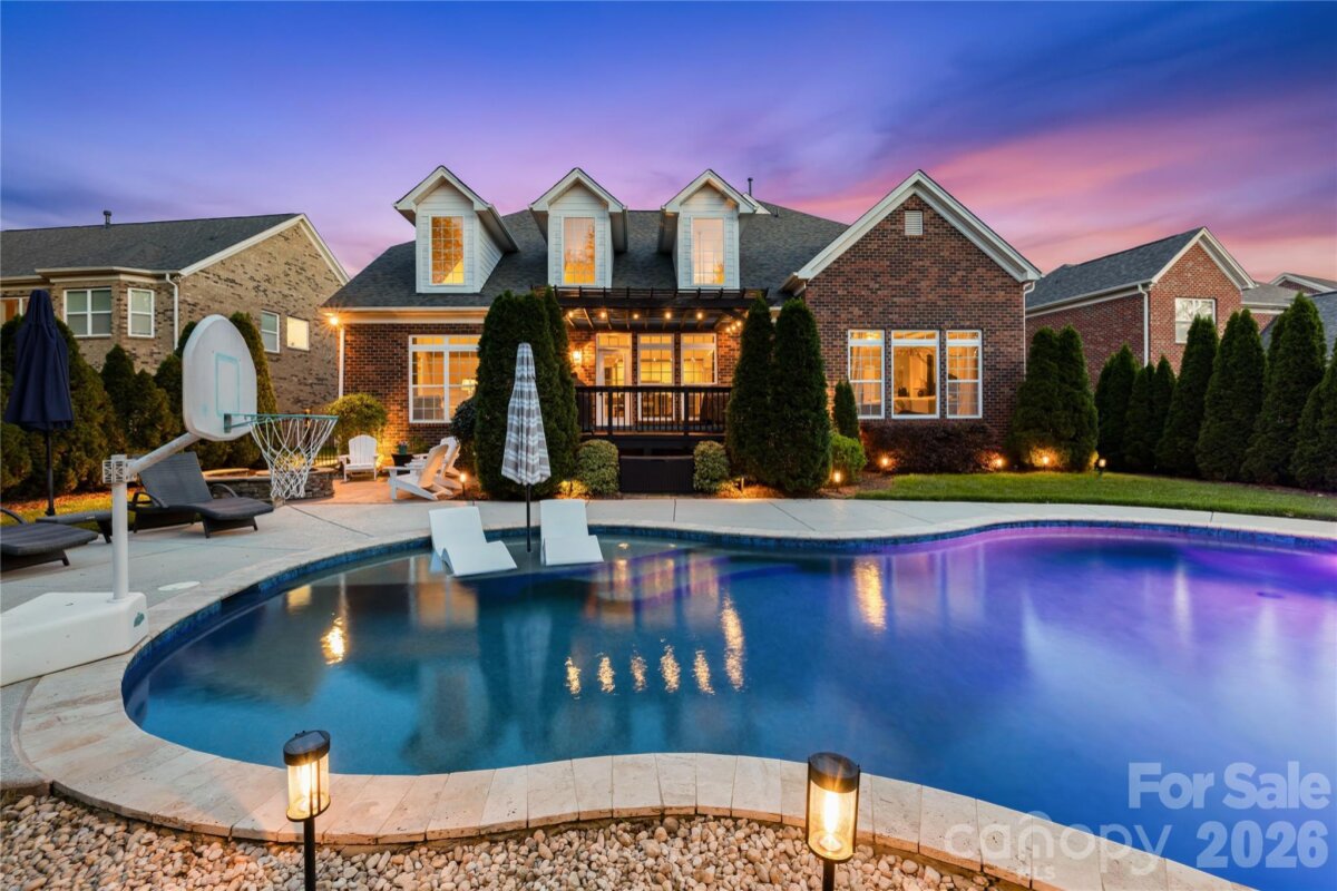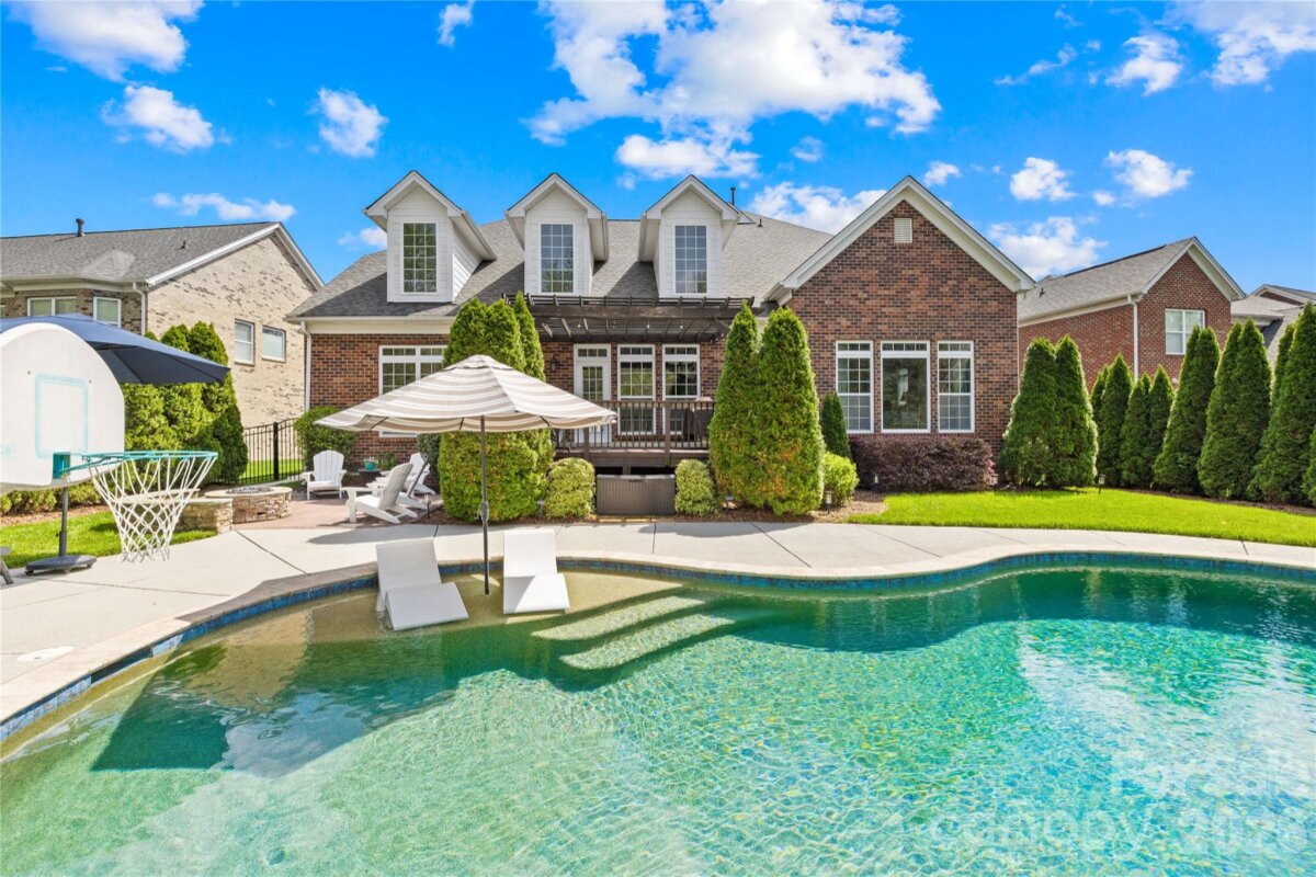 If you are looking for a well maintained full brick home in the top rated Marvin Ridge school cluster look no further. This Shea Homes Alpine model will check all of your boxes. From the outdoor oasis with inground salt water pool with tanning ledge, patio with gas fire pit, fenced and private backyard to the the wonderful open floor plan, you will want to call this one home. The heart of the home is perfect for entertaining. The kitchen has an approximately 12 foot breakfast bar that opens to the dining area and family room. The counter depth stainless steel refrigerator in the kitchen will remain. There is a stacked stone fireplace in the dining area. Off the front foyer is an office with french doors. Opposite the office is the designated formal dining room with tray ceiling and chair railing. It is presently being used as a second office. The primary bedroom with attached primary bath is on the main level. The primary bathroom features his and her vanities and walk in closets with built ins. There is a jacuzzi tub and walk in shower. The entire main level is hard wood floors! Moving upstairs you will find the loft. This area is perfect for homework/office/craft area or simply a reading nook. 3 good sized bedrooms with 2 full bathrooms are on the upper level. Closets have built in systems. There are french doors leading to a huge bonus room. Off the bonus room is another flex space. Again you will find wood floors throughout the upper level with the exception of the flex/playroom. Both HVAC units have been replaced, new tankless gas hot water heater and new architectural shingle roof. Residents of Barrington enjoy resort-style amenities, including a large pool, clubhouse, tennis and basketball courts, a playground, and scenic walking trails. The home is located minutes from downtown Waxhaw where you can enjoy the town activities like parades, Friday night music under the water tower, Farmer's market along with plenty of restaurants and local shops. Located a short distance from Blakeney, Ballantyne and the 485 corridor. Schedule your showing! Showings start Thursday, April 30th.