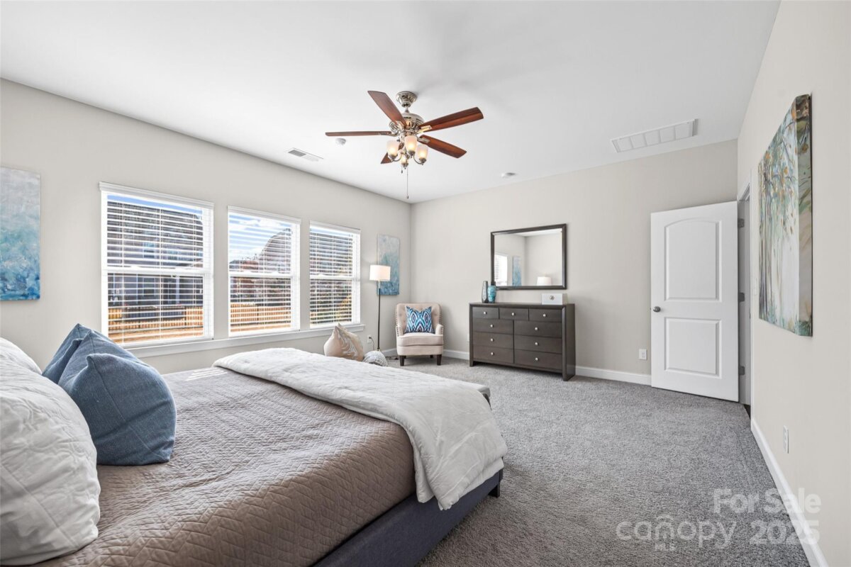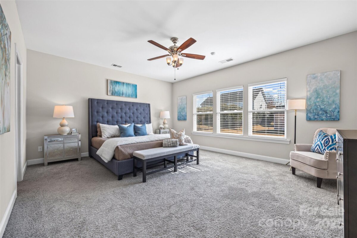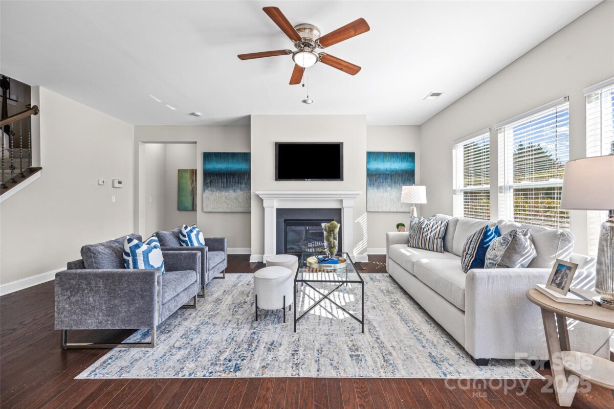 Welcome Home! Well-maintained, this home in the amenity-rich community of Walnut Creek is sure to impress. The main level features beautiful hardwood floors, blinds on all windows, a gas-log fireplace in the great room, and a dedicated office. The open concept kitchen is a "cook's" dream, offering soft-close cabinets, a walk-in pantry, double wall ovens, a gas cooktop, a breakfast area, and an island with seating. The large main-floor primary bedroom offers abundant natural light, a walk-in closet, and a spa-like en-suite bathroom. This layout provides an excellent flow for entertaining while remaining warm and inviting. The second level features a loft area with newer carpets throughout. Each secondary bedroom is generously sized. The backyard is fenced and level. Home and HVAC were inspected before listing.
