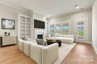 UNBELIEVABLE VALUE!! Prepare to be impressed by this beautifully UPGRADED “Redwood†model in the Tryon Collection! Only lived in for 4 mos. Thoughtfully designed and meticulously finished, this 3-bedroom, 2.5-bath home plus Den offers over 2,600 sq. ft. of sophisticated living space with timeless style and modern comfort. You’ll immediately notice the difference — 7¼" baseboards, 5" crown molding, and custom built-ins elevate this home. Premium EVP flooring, quartz countertops, and upgraded cabinetry bring designer-level quality throughout. The Gourmet Kitchen is a showstopper, featuring a massive island, GE Profile stainless appliances, a Butler’s Pantry, under-cabinet lighting, and Gas cooktop. Relax in the elegant Great Room with a custom fireplace and surround sound, or retreat to the luxurious Primary Suite with French doors, tray ceiling, spa-style zero-entry shower, and quartz-topped dual vanities. There is even a separate make-up vanity! Enjoy easy indoor-outdoor living on the extended covered rear porch, complete with a gas drop for a firepit or grill, overlooking the fully sodded, irrigated lawn. With upgrades at every turn, this home delivers the perfect blend of comfort, craftsmanship, and convenience. All in a low-maintenance 55+ active adult resort community where lawn care is included—giving you more time to enjoy the things you love!