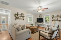 Looking for a home with heart — not another cookie-cutter copy? You just found it! This 1930 charmer was moved and rebuilt in 2005, keeping its vintage soul but upgrading everything else. It has that warm, storybook vibe the second you pull up — from the rocking-chair porch to the oversized garage, friendly front walkway, and even a tire swing waiting in the front yard that practically dares you to give it a spin! Inside, the flow feels natural and easy. The spacious living room begs you to stay awhile, and the large formal dining room opens to both the kitchen and living area — perfect for gatherings. The kitchen hits that sweet spot between classic and practical with stainless appliances, solid countertops, and cabinet pull-outs that make storage a breeze. The laundry/mudroom adds plenty of space and connects to the back deck, where a built-in doggie door opens to a fenced area ideal for your four-legged crew. The backyard? Think peaceful privacy — surrounded by trees with a powered outbuilding, an attached lean-to for projects, and a stone firepit that practically calls your name on crisp Carolina nights. The primary suite features an en-suite with double vanities and walk-in closet, while the second bath also gives you dual sinks and plenty of elbow room. Smooth ceilings, wide hallway, pull-down attic stairs with flooring, and a layout that simply lives right. Add the bonus of being close to shopping yet tucked away from it all — this one checks every box. Homes like this don’t come around often — full of charm, warmth, and personality. Come feel it for yourself… it’s even better in person!