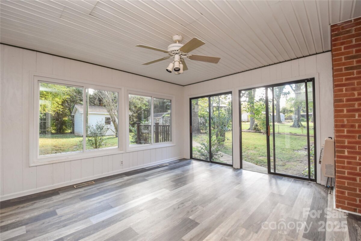Welcome to this beautifully updated 3-bedroom, 2-bath full brick ranch in the highly desirable White Oaks neighborhood of Mooresville. This single-story home is ideally located just steps from the elementary school and minutes from downtown—offering unmatched convenience. Sitting on a generous lot, the expansive backyard includes two outbuildings, both equipped with electricity—perfect for extra storage, a workshop, or hangout space. Inside, you'll find a freshly repainted interior and brand-new flooring throughout. The remodeled kitchen is move-in ready and designed for modern living. With over 2,500 square feet of living space, this home also features a spacious screened-in porch that doubles as a sunroom, leading to a large deck complete with a built-in gas grill—ideal for entertaining. The primary suite is impressively sized and features a fully renovated en-suite bathroom to match.