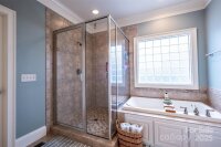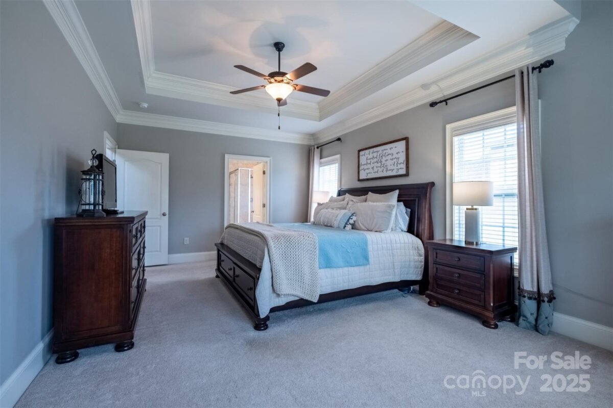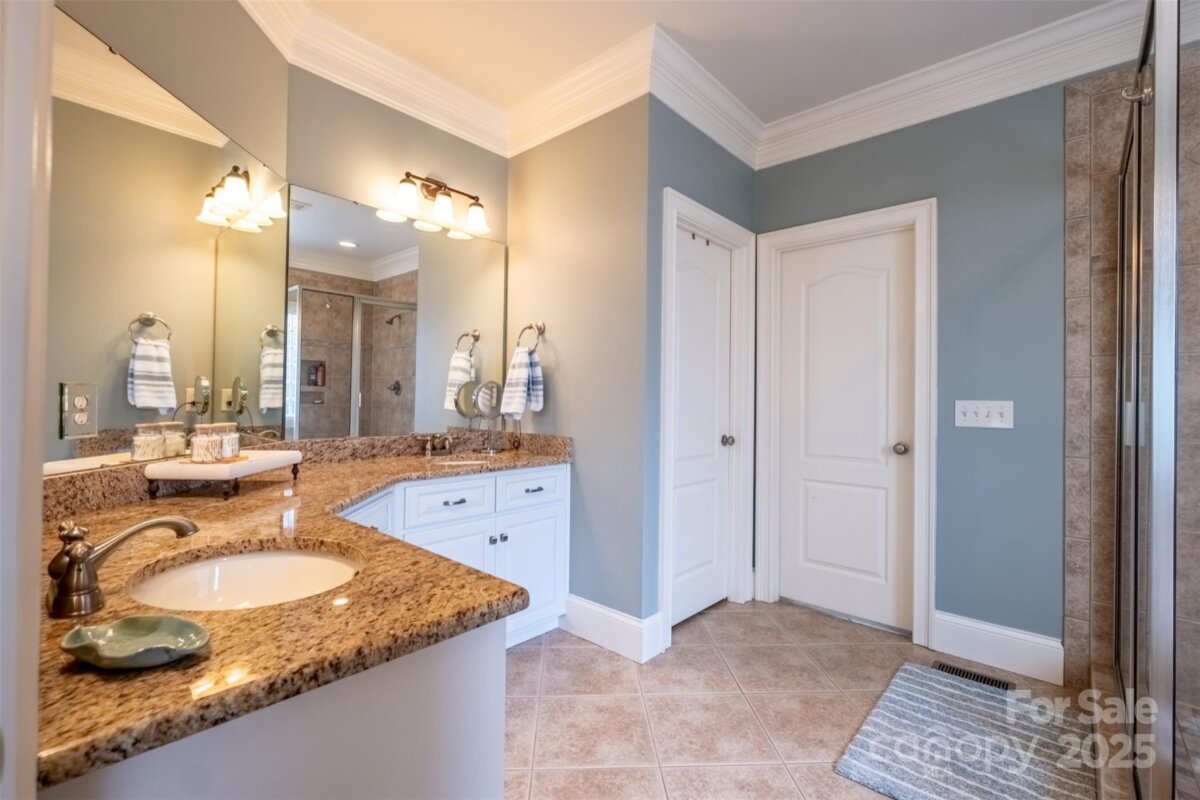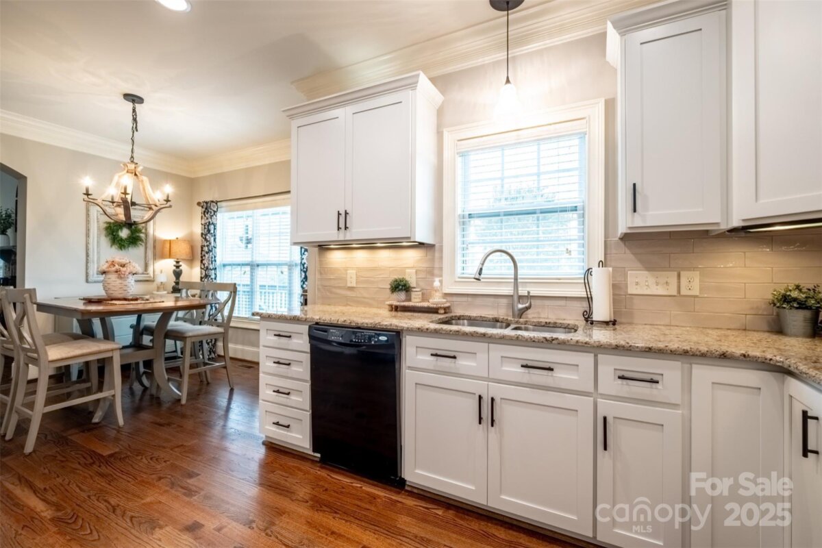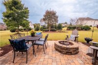 This beautiful all-brick quality-built home by Grady Cook is surrounded by gorgeous landscaping in front and rear yards that offer year-round beauty. Once you step inside the home, you instantly have the WOW factor! There are gleaming hardwood floors throughout the entire main level (excluding the main floor primary suite with sitting area) and a beautiful wrought iron staircase. The two-story vaulted great room features a striking stacked stone gas-log fireplace and mantel, creating a warm and inviting centerpiece. Throughout the home, you'll appreciate heavy trim work, 2-inch blinds, and thoughtful architectural details. The kitchen has been updated and is a bright and cheery area to have meals and entertain off of the great room. The home offers a primary bedroom downstairs with sitting area as well. Upstairs has great layout with additional 3 bedrooms and large bonus room. The beauty and care of this home extend outdoors from a French door that leads to the covered rear porch with ceiling fans and lower patio. The paver stone patio and custom fire pit overlook an extensive, lush lawn with landscape lighting—perfect for relaxing or entertaining. This home is a must see and will not disappoint!