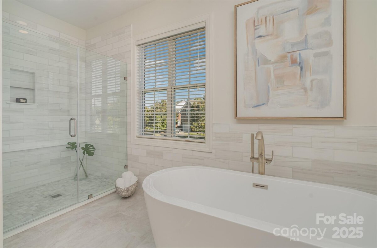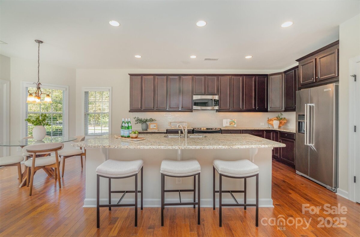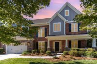 Beautiful full-brick Silverado model nestled on a premium 0.33-acre homesite in the highly sought-after Barrington community! From the charming rocking chair front porch to the grand two-story foyer, this home offers timeless curb appeal and welcoming elegance. Inside, you'll find a light-filled interior with hardwood floors flowing throughout the main living areas, freshly painted walls, and serene views of the lush, private backyard. This thoughtfully designed floor plan features 5 spacious bedrooms, 3 full baths, and an oversized bonus/game room, offering flexibility for every lifestyle. The open-concept kitchen is designed for both function and style. It boasts an oversized island with seating for four, a newly installed European tile backsplash, stainless steel appliances (including a newer dishwasher), elegant custom cabinetry, and a breakfast bay dining area—perfect for everyday living and effortless entertaining. On the main level, a private guest suite with full bath access offers ideal accommodations for visitors. Upstairs, retreat to your luxurious primary suite with a relaxing sitting area and large walk-in closet. The completely updated primary bath features new cabinetry, a dual-sink vanity with quartz countertops, a stunning tiled shower, and a freestanding soaking tub—creating a spa-like sanctuary you’ll never want to leave. Step outside to your backyard oasis, complete with a custom-built-in grill and spacious patio—perfect for weekend barbecues, or simply unwinding in your own retreat. Residents of Barrington enjoy resort-style amenities, including a pool, clubhouse, tennis and basketball courts, a playground, and scenic walking trails. All of this within a vibrant, friendly community and zoned for highly rated schools. This home truly checks every box—premium lot, beautifully maintained interior, modern updates, and an unbeatable location. Welcome home! *New Roof (2024). Downstairs A/C unit replaced in 2019.
