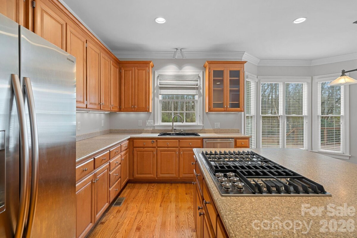 Great opportunity to live in the popular Somerset neighborhood in the Marvin Ridge school district. The house features a spacious, sunny Great Room, which opens to the kitchen and breakfast area. In the kitchen, you’ll find plenty of cabinet space and pantry shelving. The gas cooktop, wall oven, and microwave were replaced in 2025. A formal dining room and living room complete the first floor. The house features hardwoods throughout the main level and newly installed carpet (March 2026) upstairs. The primary bedroom suite includes a walk-in closet, garden tub, shower, and two vanities. Three additional bedrooms, large bonus room, two additional bathrooms, and laundry area are also on the upper level. Large deck overlooks the private backyard, which backs up to the HOA wooded common area. The backyard has a split rail fence. Neighborhood amenities include a pool, tennis courts, and a clubhouse, with lots of social events planned throughout the year. Excellent Marvin schools. Convenient location with easy access to Rea Rd, Providence Rd, and 485, and a variety of shops and restaurants.