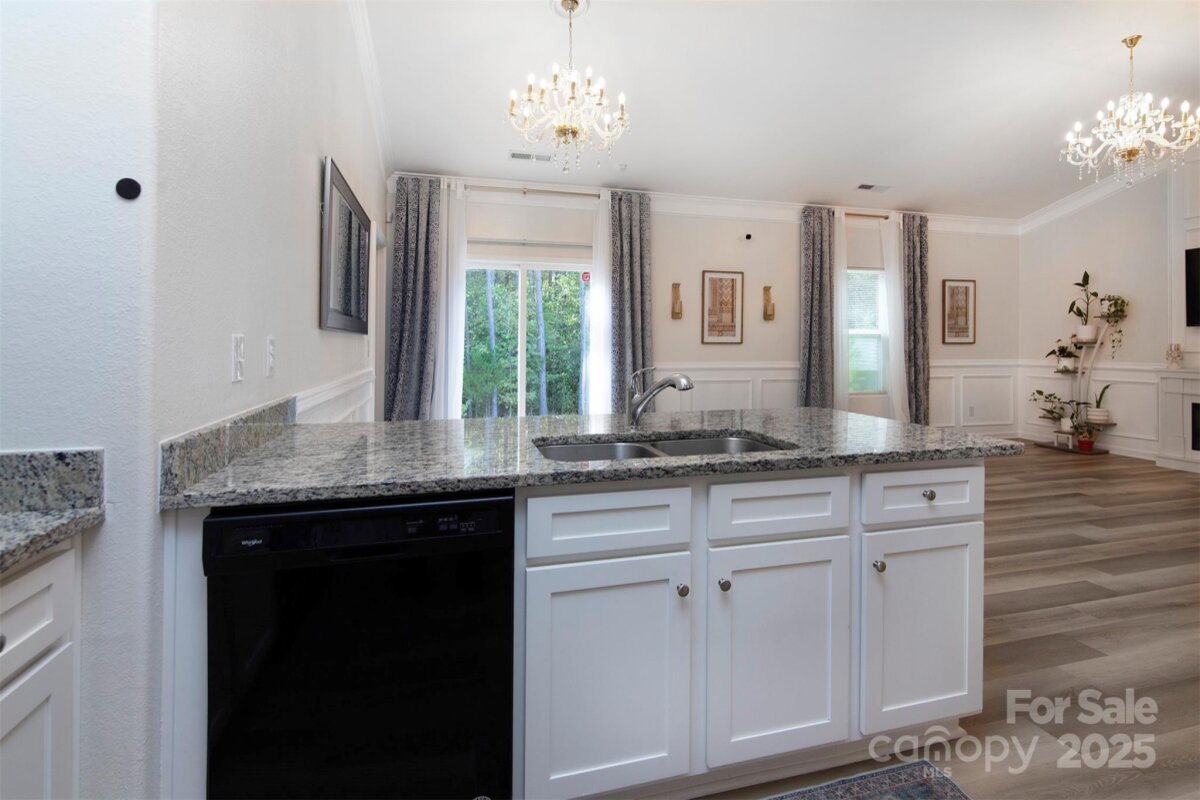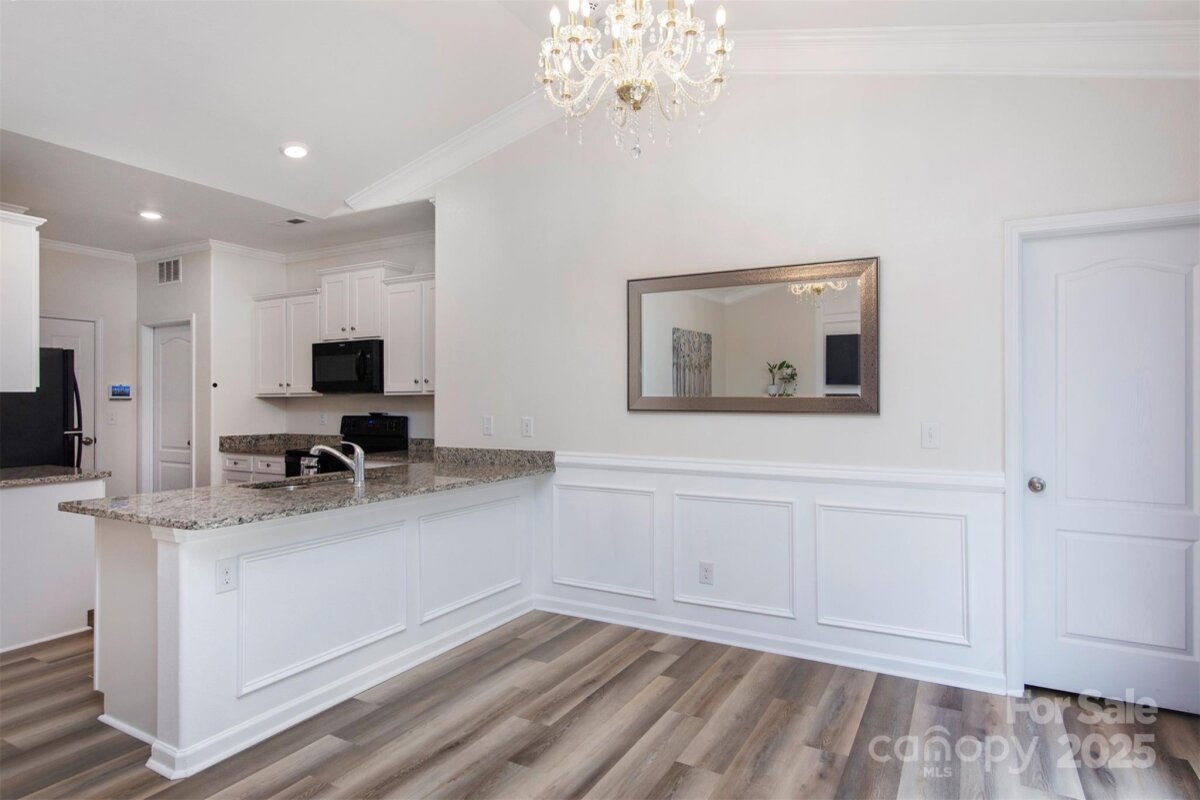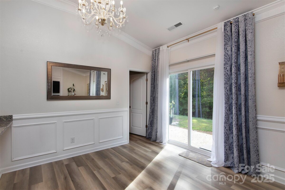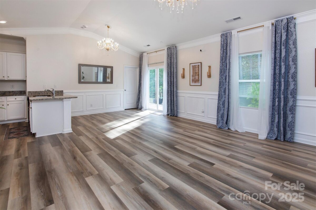Welcome to this beautifully maintained single-story home offering 3 spacious bedrooms and 2 full bathrooms. When you enter the house you will be greeted with a beautiful wainscoting continuing to soaring vaulted ceilings in the main living and dining areas. This is warmly followed by an open and airy family room perfect for everyday living and entertaining. High end features are further displayed by the crown molding which gives this home an elegant feature. Moreover, the primary suite also features vaulted ceilings. The Luxury Vinyl Plank flooring flows throughout the entire home. The kitchen includes an island perfect for casual meals or morning coffee. To top it all, off, the wooded backyard provides exceptional privacy and a natural backdrop. located just minutes from I-485 include the renowned UNCC, various schools, grocery stores, and churches. As such, this home offers a nice blend of both comfort and convenience in a great neighborhood. Welcome home. Call today to schedule a showing.