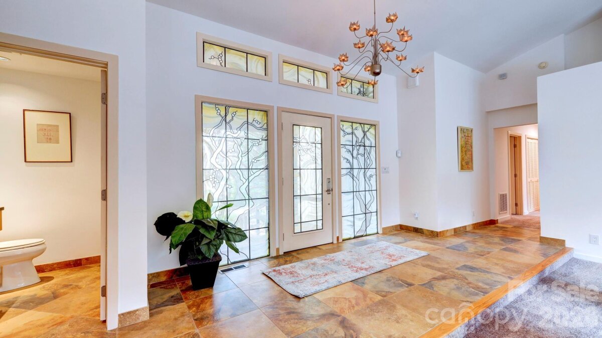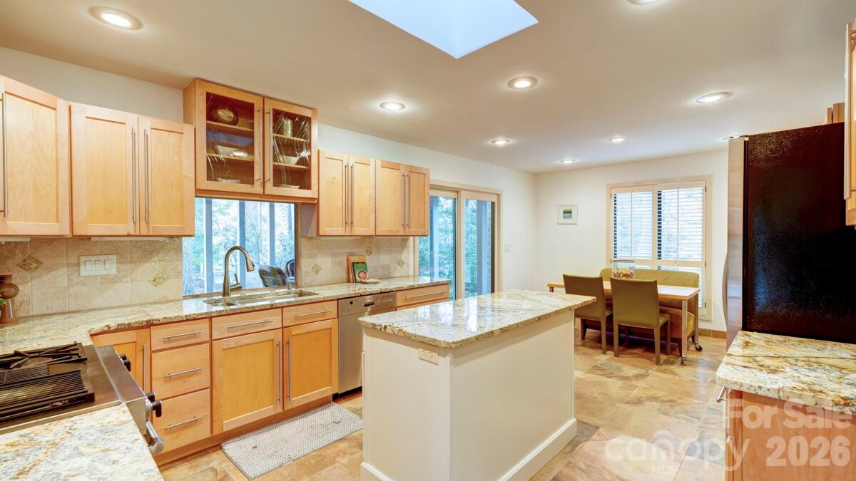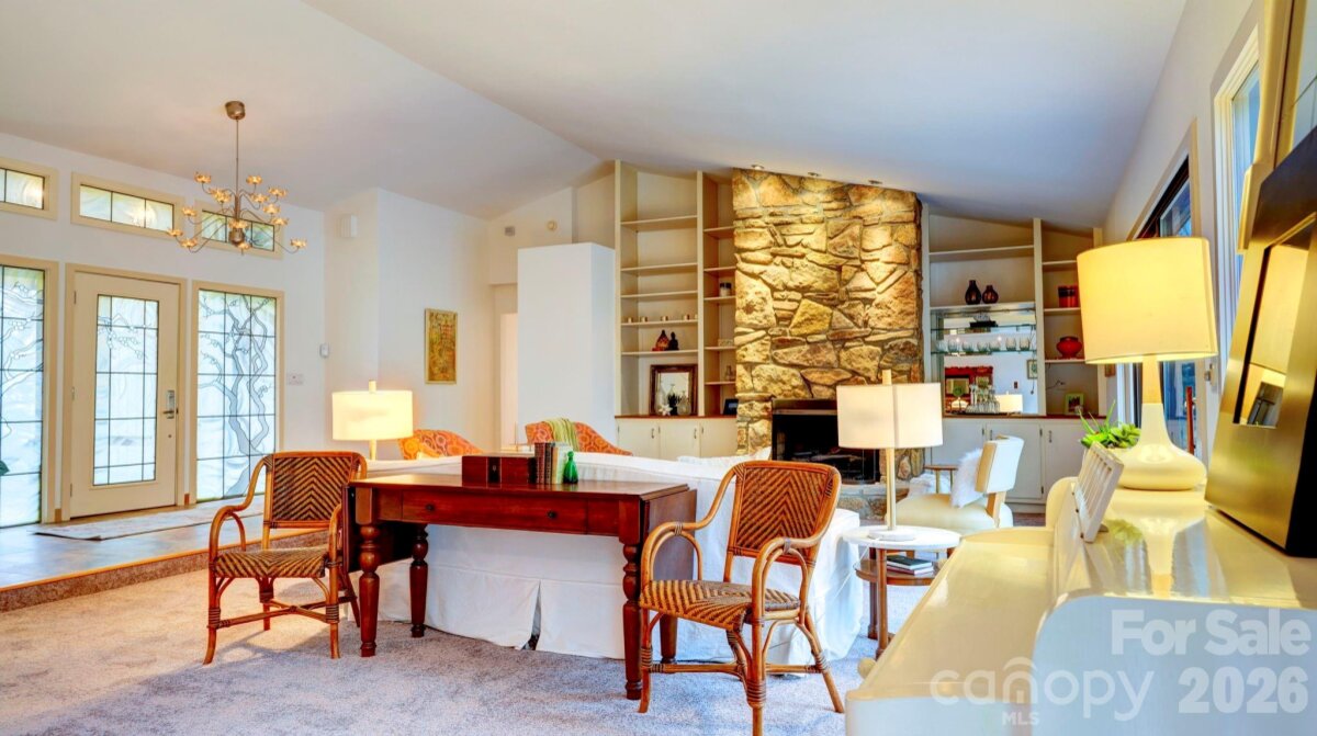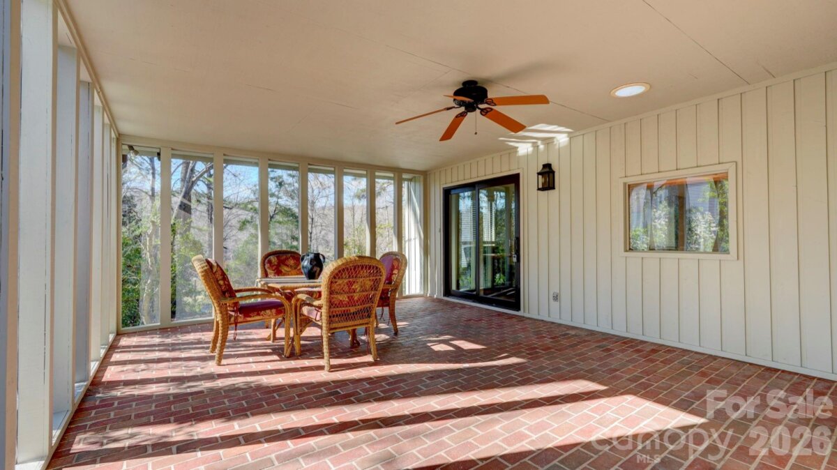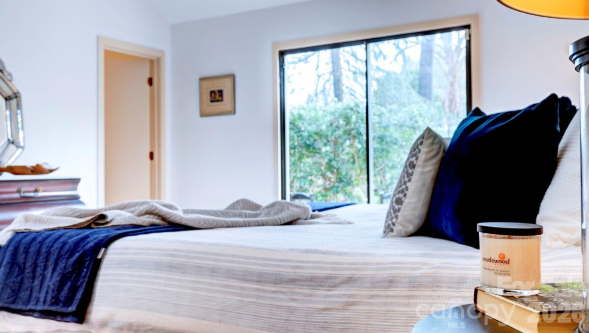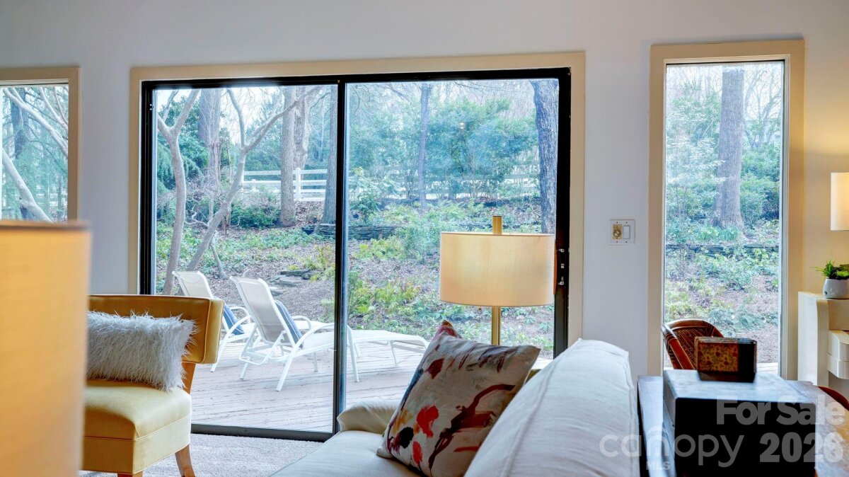 This coveted Raintree classic is ready for its new owner, offered for sale for the first time in 20 years. Situated on a private lot on quiet Waters Point Court, this one-level contemporary has fantastic outdoor spaces, with a back deck/patio spanning the length of the house, plus a 346 square foot screened porch for relaxing and dining al fresco. Freshly painted inside and out, this home has a spacious entry way which leads to the vaulted living room with built-ins and fireplace. It connects to dining, and to the kitchen with granite countertops, island, and breakfast area. A wall of sliding glass doors open to the back deck from the living/dining and from the primary suite, a spacious vaulted bedroom with walk-in closet and large bath. There are two more bedrooms, connected by an updated jack-n-jill bath. There's a storage/flex space (the perfect home office or gym), and a 2-car garage. New carpet in the living areas and bedrooms, and plantation shutters across the front of the house. Located on a cul-de-sac street bordering one of Raintree's lakes, with easy access in and out of the neighborhood via Shallowood Lane to Providence Road. Welcome home!