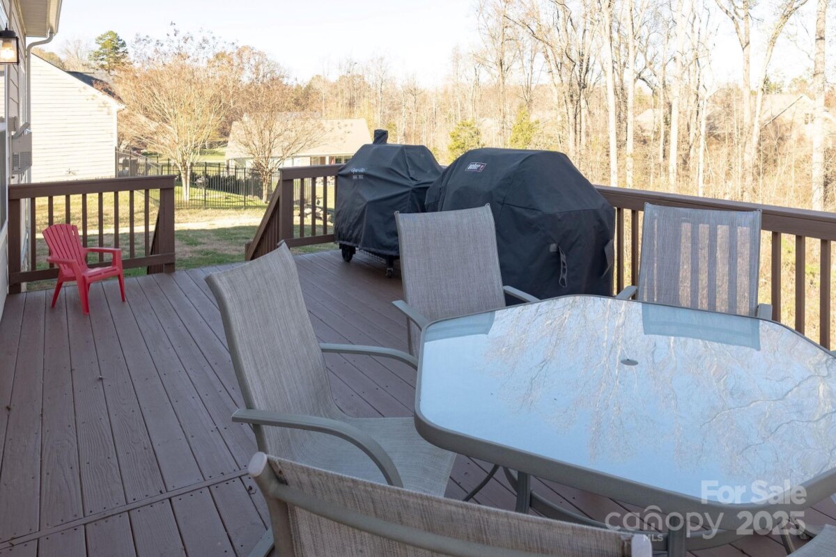 Welcome to this well maintained home nestled in the heart of Mint Hill. Step into the home where memories are waiting to be made with 3 bedrooms, 2.5 bathrooms, and features designed with comfort and convenience in mind. Enjoy the luxury of one-owner care and numerous upgrades, including a Jack-and-Jill bath with dual vanity that thoughtfully connects the secondary bedrooms, an added powder room for guests, and fresh paint throughout the home giving it a pristine feel. The foyer and living areas gleam with 5-inch pre-engineered flooring, guiding you to a spacious primary bedroom where the comfort continues with 7-inch pre-engineered flooring. Witness the charm of plantation blinds that filter natural light across the home, and step out onto the expanded, freshly-stained deck for a breath of fresh air and an idyllic view of the wooded back area offering privacy and a connection with nature. The exterior's fresh paint from 3 years ago stands as a testament to the property's well-maintained appearance. Inside, the warmth of the fireplace is enhanced by a blower for the gas logs, ensuring cozy evenings with loved ones. The custom-built desk and bar in the upstairs bonus room offer a versatile space that can serve as an entertainment hub or be easily converted into a fourth bedroom. This home offers lots of storage, including custom shelving in the garage and an extra storage closet. Close proximity to vibrant downtown Mint Hill with plenty of shopping, dining, and entertainment.