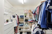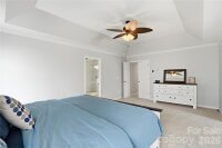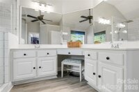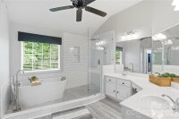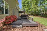 Meticulously maintained Highland Creek home is located in a cul-de-sac. This home has been beautifully updated with laminate flooring on the main level and upgraded cabinetry, countertops and decorative backsplash in the spacious kitchen. A guest suite and full bath are conveniently located on the main level. The show-stopping luxurious primary bath features a wet zone boasting an oversized tile shower and a standalone deep soaking tub. Enormous primary bedroom with a tray ceiling and a sizable sitting area. This home features 6 bedrooms if needed or a bonus room if preferred. Huge walk-in closet in the bonus room. New carpet has been installed on the stairs and second floor. Newer HVAC installed - 2024 For added convenience, an EV charger has been installed in the garage. Garage features a side entry door and built-in shelving for added storage along with a work bench. Relax on the large deck or by the fire pit out back while overlooking the golf course just beyond the trees in the private, wooded backyard. Highland Creek offers resort styled amenities including five swimming pools, fitness center, pickle ball courts, playgrounds, recreational spaces. A Must See!