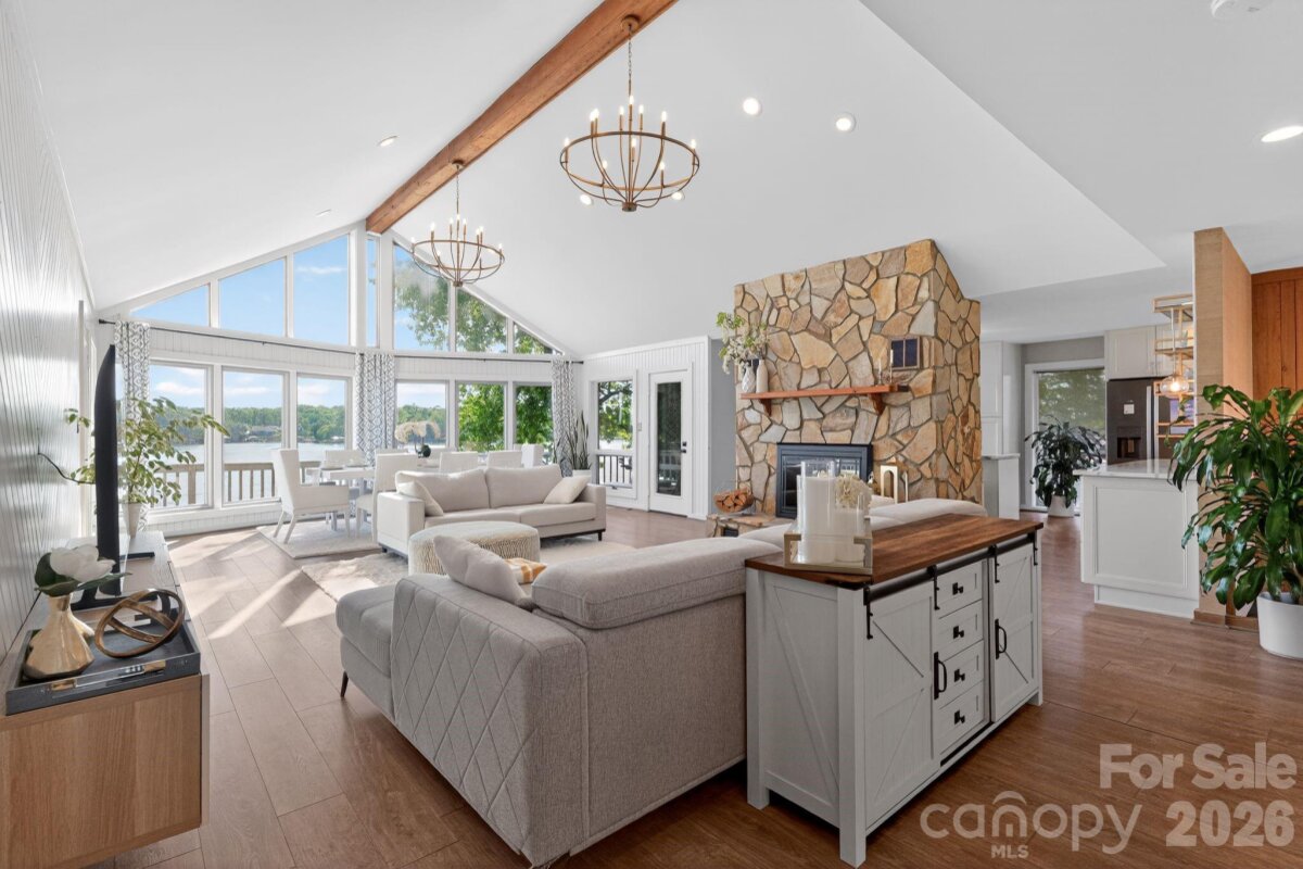 Fully renovated lake front home on main channel with amazing views! Amazing Lake living with over 90ft of shoreline. The property has been upgraded in every aspect possible! Newer roof, newer HVAC, fully finished basement, all bathrooms have been upgraded and too many more to list. All bedrooms has private full bathrooms. Dual fireplace located in main level living room and basement family room. 2nd kitchen in basement great for entertaining. Large wraparound deck located in back of home to enjoy the amazing water views. Brand new cover dock with floating dock, boat lift and jet ski pads. This property has it all and is a must see!!!