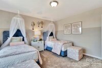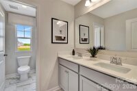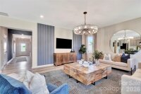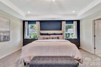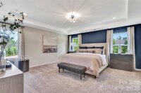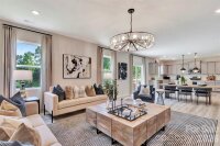 Welcome to the Savoy! This beautiful former model home comes as-is with a 1-year 3rd party warranty. Walking in you are greeted with a homey and inviting foyer. Just off to the side is a main level guest suite, complete with its own private bathroom and large walk-in closet. Continuing on to the well-appointed kitchen, which is a chef's dream, equipped with sleek granite countertops, stainless steel appliances, a French door refrigerator and plenty of storage space for all your culinary needs. The family room is open and spacious, with convenient access to the kitchen. Walking out back there is an extended patio, perfect for grilling or entertaining. The main level is finished with easily maintainable EVP flooring to make cleaning a breeze. Many of the windows throughout the home are adorned with custom window treatments and the designer light fixtures add another touch of elegance. Upstairs is spacious loft would be perfect for game night or extra living space. The laundry room is spacious and versatile, complete with laundry cabinets and a sink. The secondary bedrooms allow for other family members to have their own space to unwind and relax, with one of the secondary bedroom having its own private bathroom. Finishing the upper level is your luxurious Owner's suite. Accented with a tray ceiling and also allowing for plenty of natural lighting, you'll find peace and comfort. The expansive walk-in closet is perfect for housing any size wardrobe. Finally, the ensuite is like walking into a spa. With a dual vanity, separate tub and tiled shower and private toilet area, you'll find serenity and relaxation. Welcome to your new home!