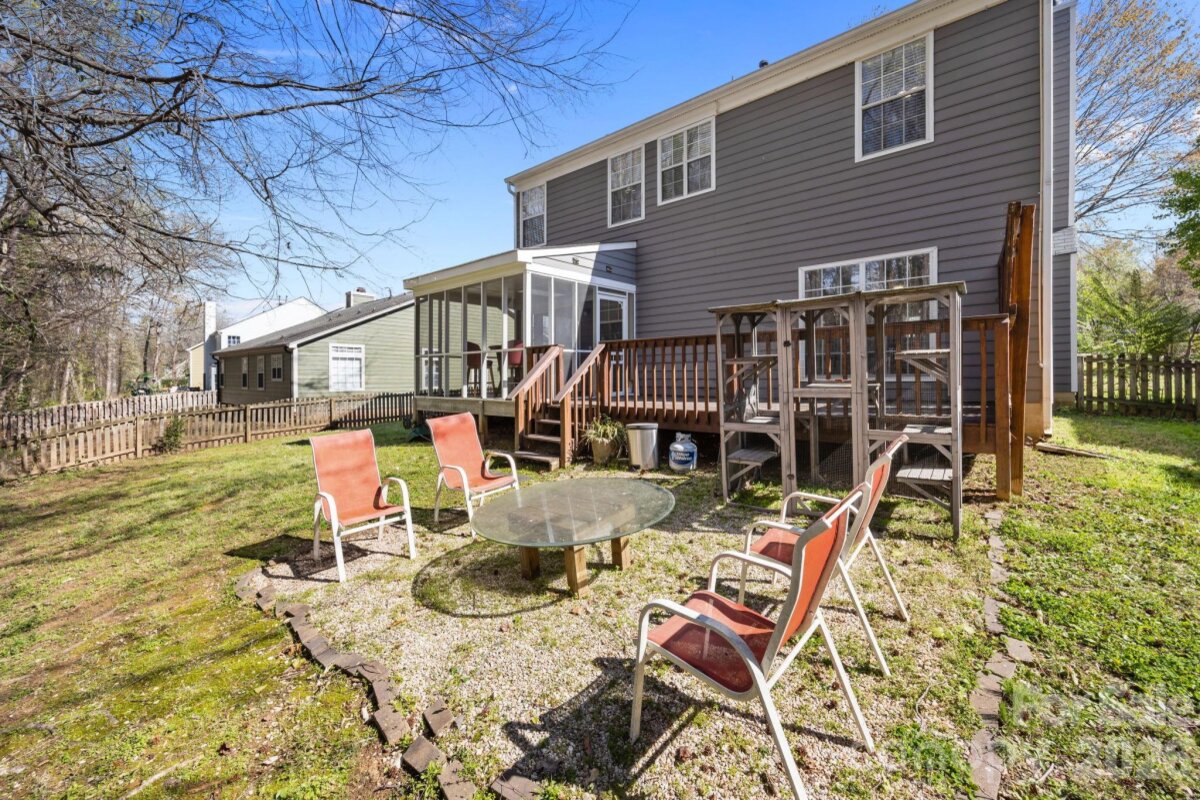 This well-appointed and beautifully maintained single-family home in Cambridge features 4 bedrooms, 2.5 baths, and a spacious 2-car garage. Filled with abundant natural light and styled with neutral paint throughout, the home offers an easy, comfortable flow that feels welcoming from the moment you step inside. The sunlit, spacious family room is perfect for everyday living and relaxation. Beautiful dining room provides the perfect space for gatherings and entertaining. Gorgeous and functional kitchen features stainless steel appliances, granite countertops, and a large pantry, with an adjacent breakfast area that opens to a lovely screened porch - ideal for morning coffee or quiet evenings! A wonderful back deck overlooks the private backyard, providing the perfect setting for entertaining. Laundry room is conveniently located on the main level. Upper level features a large primary suite with a private bath, along with two spacious secondary bedrooms, a full bath, and a versatile fourth bedroom / bonus room. Located in a peaceful, welcoming community with easy access to I-485, this home is close to shopping, dining, and everyday conveniences. A fantastic opportunity in a truly desirable location. Welcome home!