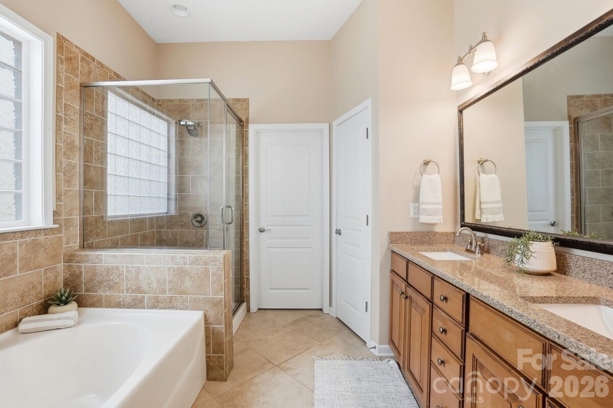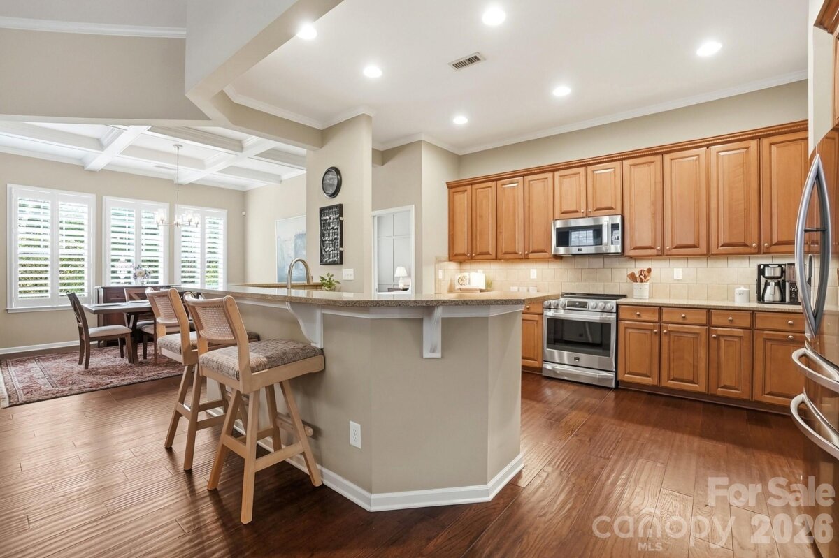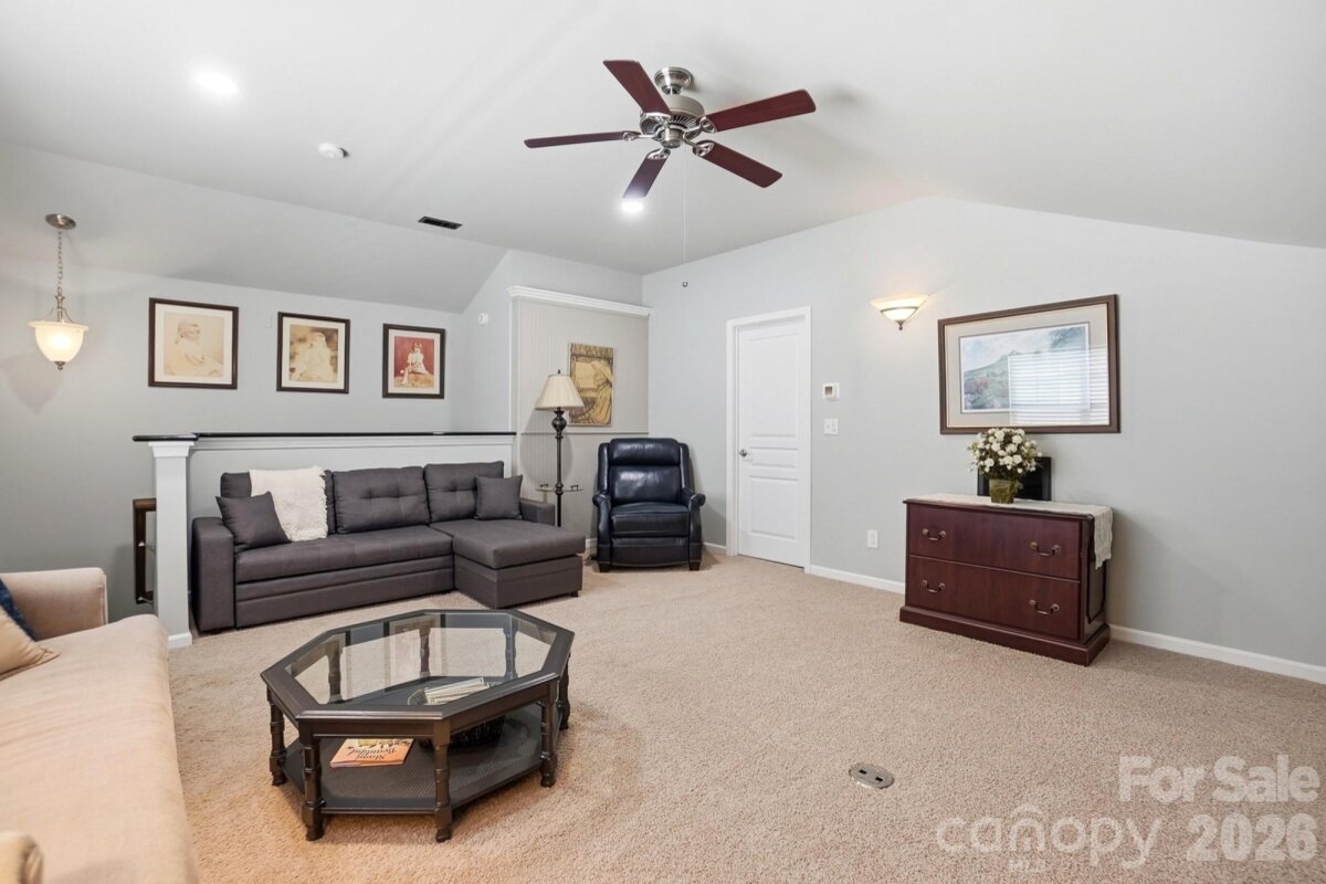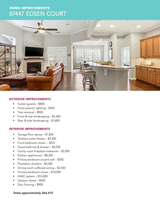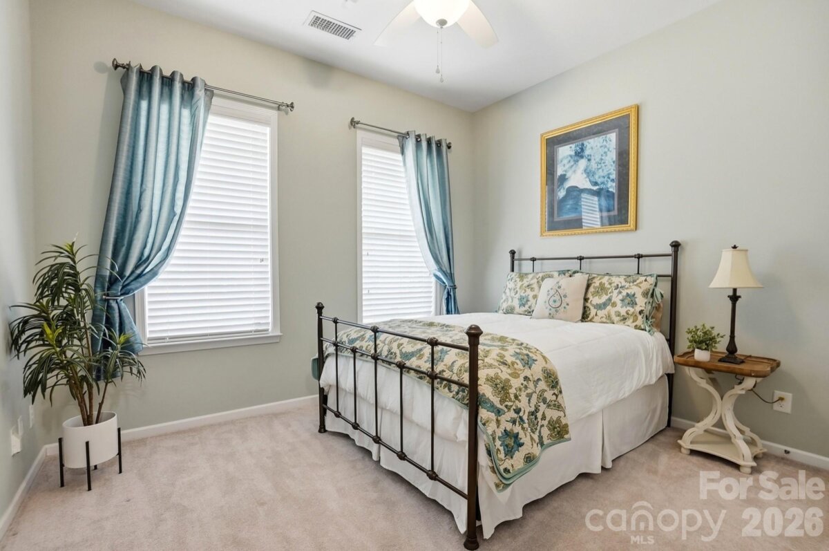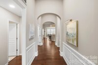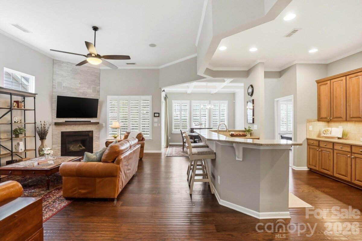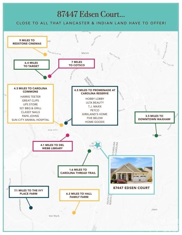Welcome to 87447 Edsen Court, located in the desirable Walnut Creek community. This thoughtfully designed home offers a flexible floor plan with the primary suite and secondary bedroom on the main level, a dedicated home office downstairs, and a third bedroom or bonus room upstairs. A beautiful foyer welcomes you in, leading to an open main level with 10 and 12 foot ceilings. The dining room features an elegant coffered ceiling, while the living room is anchored by a stunning fireplace that serves as the focal point. The spacious kitchen offers ample room for cooking, gathering, and entertaining. Step outside to a covered and screened patio, perfect for enjoying year-round Carolina living. The fenced backyard is a private garden retreat, highlighted by carefully designed landscaping that sets this home apart. Walnut Creek residents enjoy direct access to the Carolina Thread Trail, including the Twelve Mile Creek Trailhead within the neighborhood. Ideally located near shopping and dining in Indian Land and Downtown Waxhaw, the community also features sidewalks, walking trails, parks, pools, and a fitness center. With a newer HVAC system (1 year old) and numerous upgrades and improvements, this home is move-in ready and suited for a variety of lifestyles.