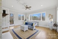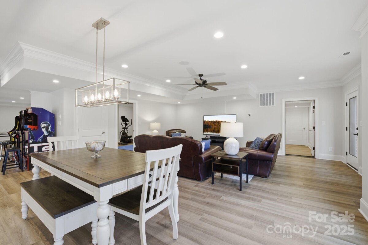 Set on the shores of High Rock Lake, 875 Starboard Reach offers an exceptional lakefront lifestyle defined by space, flexibility, and resort-style amenities. Situated on nearly 3 acres, this custom-built residence blends elevated design with everyday livability—perfect for entertaining, multigenerational living, or extended lake stays. The main home showcases expansive living spaces with panoramic water views, multiple fireplaces, and seamless indoor-outdoor flow. A stunning nano-style folding door system opens to a fully screened veranda, creating over 30 feet of unobstructed connection between the gallery and outdoor living areas. Enjoy a heated saltwater pool and spa, outdoor kitchen, screened grilling deck, and multiple terraces designed for year-round enjoyment. Adding rare versatility, the property includes a private second living quarters above the garage, complete with a bedroom, full bath, living area, laundry, and full kitchen—ideal for guests, extended family, or private accommodations. The full walk-out basement further expands the home’s functionality with an additional kitchen, media and recreation rooms, exercise space, workshop, and guest accommodations—perfect for hosting or creating dedicated entertainment zones. Outdoors, lake living takes center stage with a two-slip aluminum dock featuring an oversized deck and boat lift, complete with power and water. A gated drive, irrigation system, dusk-to-dawn accent lighting, and mature tree-lined privacy complete the setting. Thoughtfully equipped with a 10kW solar array, whole-house natural gas generator, monitored security system, and whole-property Ubiquiti WiFi, this home delivers peace of mind alongside luxury. With easy access just one hour from Uptown Charlotte, located within the Yachtsman’s Point community, residents enjoy lake access, walking trails, and recreational amenities—all while feeling worlds away. This is more than a home—it’s a private lakefront retreat designed to live, gather, and escape beautifully.