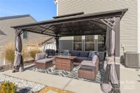 Welcome to this beautifully maintained traditional home offering 3 bedrooms and 2.5 bathrooms. The main level offers a fantastic open floor plan featuring vinyl flooring throughout and a bright, spacious living room filled with natural light from large windows! Flowing into the kitchen which boasts a large central kitchen island with breakfast bar/seating, pendant lighting, a custom backsplash, matching appliances and a dedicated pantry—perfect for both everyday cooking, a quick meal or entertaining. The separate dining room offers a dedicated area for formal settings, or a sit down meal with loved ones. On the upper level, the spacious primary suite includes a large walk-in closet and private bath. The secondary bedrooms are also generously sized and provides ample living, or flex space as needed. The backyard oasis features a fire pit and sitting area, covered gazebo, and a large extended patio—ideal for gatherings and relaxation. The fenced yard provides privacy and plenty of space for play or gardening. A perfect blend of comfort, functionality, and outdoor enjoyment in a desirable neighborhood. Great location close by to Mt Island lake, White Water Center and easy access to I85, I77 and CLT Airport! Tons of shopping, restaurants and entertainment nearby as well, do not miss your opportunity to own this wonderful home!