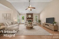 Tucked away on a quiet cul-de-sac in the desirable Raeburn community, this single-level ranch sits on a beautiful, level lot of approximately half an acre and offers a comfortable, functional layout with four bedrooms and inviting living spaces. A massive backyard - partially fenced - provides plenty of room to relax, garden, or entertain, and is complemented by both an outdoor storage shed and attached storage for added convenience. Inside, the home is designed for easy everyday living. The vaulted ceiling in the great room creates an airy feel, while a classic brick wood-burning fireplace with a wood mantle serves as a warm focal point. From here, a door leads directly to the patio, extending your living space outdoors. The eat-in kitchen features laminate countertops, a gas range, built-in microwave, and dishwasher, and flows seamlessly into a cozy breakfast nook as well as a separate dining area that can easily accommodate traditional or bench-style seating. A bright front bedroom with large windows and a ceiling fan offers flexibility as a guest room or home office. All bedrooms include ceiling fans for added comfort. A full hall bath serves the secondary bedrooms, while the primary suite offers a private retreat with a walk-in closet, vanity area, and full bath. Recent updates include a new roof (2025), water heater (2026), and a full vinyl exterior for low-maintenance living. A utility room adds everyday practicality, and the washer, dryer, and refrigerator will remain, making move-in even easier. The wood-burning fireplace has not been used by the current homeowner and is being sold as-is. This home presents a wonderful opportunity for updates and personalization, offering strong value in a prime location. Residents of Raeburn enjoy community amenities including a pool, tennis and pickleball courts, recreation field, and playground. Conveniently located near shopping, dining, fitness, and recreation in Blakeney, Waverly, Stonecrest, and Ballantyne, with easy access to I-485, this home blends comfort, potential, and an unbeatable setting.