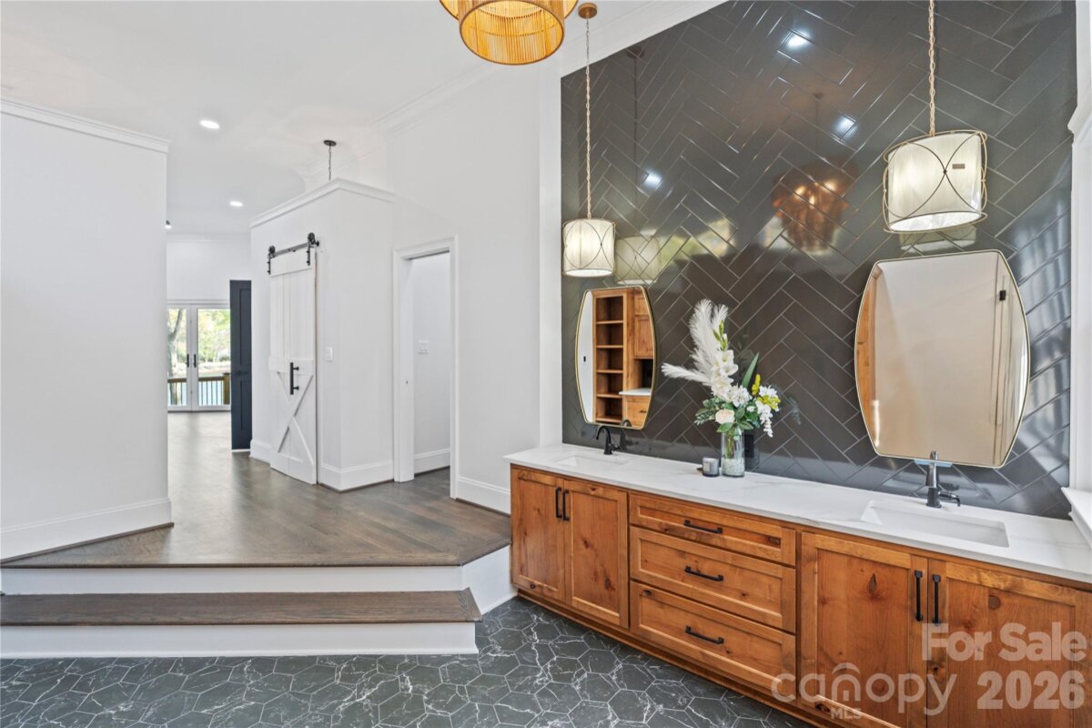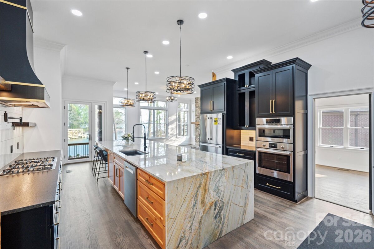 Experience the perfect blend of luxury lakefront living and refined mountain-inspired design in this fully renovated Lake Norman retreat. Thoughtfully reimagined from top to bottom, this home offers elevated finishes, timeless materials, and a seamless connection to the water. Nestled in a deep water cove with long-range views of Lake Norman, this property delivers both tranquility and accessibility—just minutes to the main channel by boat. From the moment you arrive, the striking stone front porch and architectural stonework create a bold first impression. Inside, the home opens to a light-filled interior featuring new windows, soaring ceilings, rich hardwoods, and stunning cedar posts and accents that bring warmth and character throughout. At the heart of the home is a chef’s dream kitchen, showcasing a dramatic quartz island with breakfast bar, custom cabinetry, all-new stainless steel appliances, and a custom hood over the gas cooktop. Designer lighting and curated finishes create a sophisticated yet inviting space ideal for entertaining. The primary suite is a private retreat, offering serene views of Lake Norman and a spa-inspired ensuite bath complete with a large walk-in shower, quartz countertops, and a thoughtfully integrated stackable washer and dryer for added convenience. The two additional bedrooms have custom closets and share an exquisite jack and jill bath. Additional features include: Quartz countertops throughout All new light fixtures Beautifully updated baths and living spaces Custom millwork paired with warm cedar detailing Newly epoxied garage floor Meticulously landscaped with lake fed irrigation system Step outside to the new covered rear porch with cedar accents, perfectly positioned to take in the peaceful waterfront setting. The outdoor experience continues with a new dock and covered boat slip, making lake days effortless. This home offers the best of both worlds—quiet cove living with long-range views and quick access to the main channel—all wrapped in a design that blends luxury lakefront elegance with a distinctive mountain-modern feel.