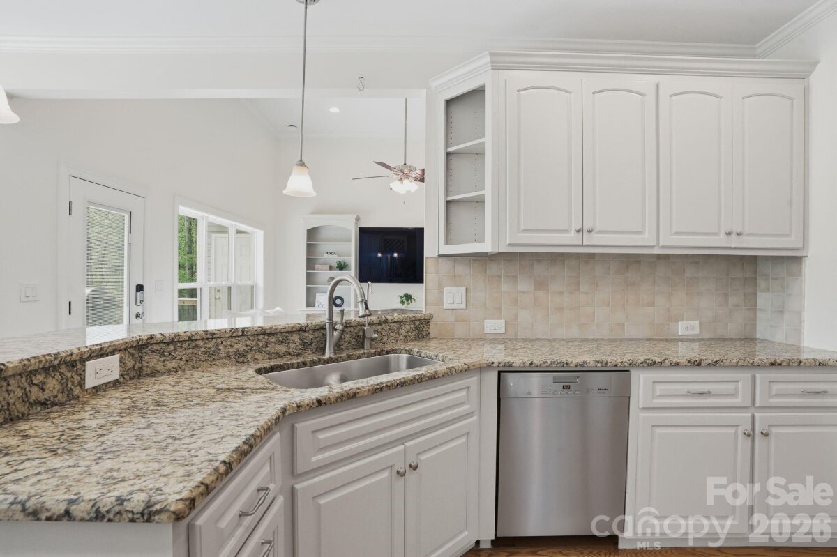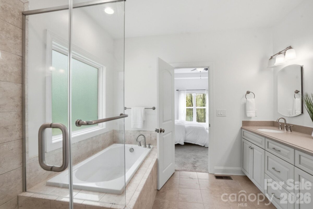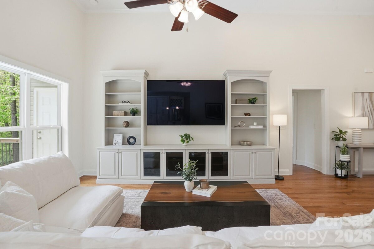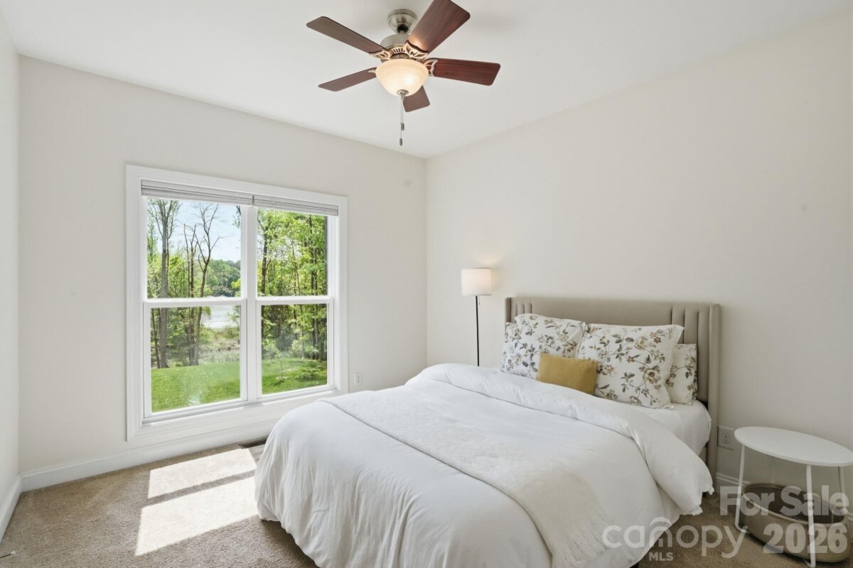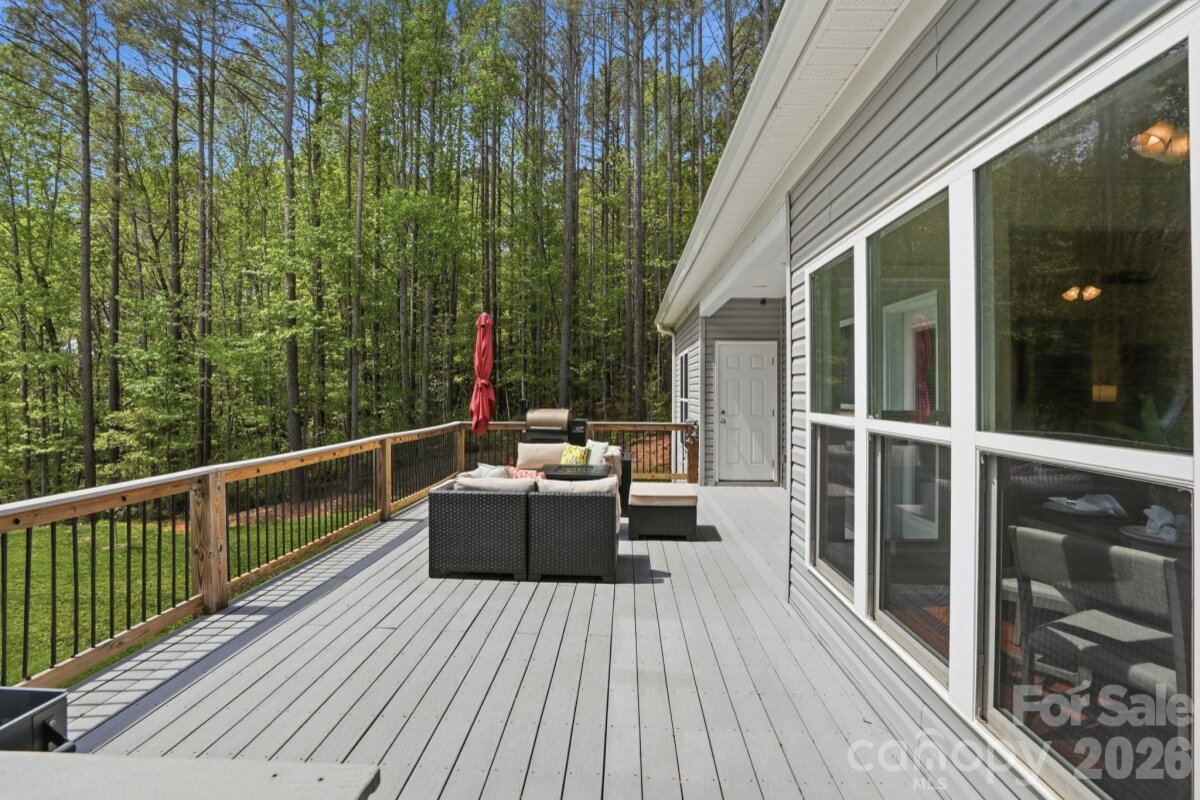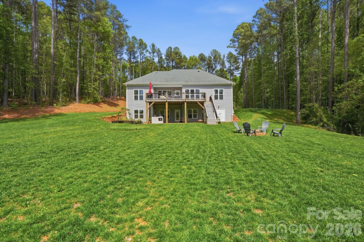 Set on 5 acres, this custom home is nestled among the trees with a large cleared yard and Lake Wylie water views! Tall ceilings in the entry, living and dining areas create a bright, open feel, flowing into a well appointed kitchen with granite countertops, Bluestar gas range, Miele dishwasher, stainless appliances and an 800 gallon per day reverse osmosis system with UV filtration. The primary suite offers a quiet retreat with dual vanities, soaking tub, separate shower and a spacious walk in closet. The finished walkout basement adds flexibility with an additional bedroom, full bath and bonus space ideal for guests, office or gym, plus additional unfinished basement space perfect for storage or water gear. A large Trex deck overlooks the expansive yard and peaceful Lake Wylie water views. Water is not dockable but perfect for paddle boards, kayaking or canoeing. Upgrades include a Rinnai on demand water system, whole home generator, WiFi 6, integrated security with cameras, radon mitigation, epoxy garage floors and high efficiency Trane HVAC with whole house air filtration. Unfinished attic space already framed, plumbed and wired offers additional square feet for future expansion. Unincorporated location means no city taxes with easy access to I 485, the airport, shopping and the River District.