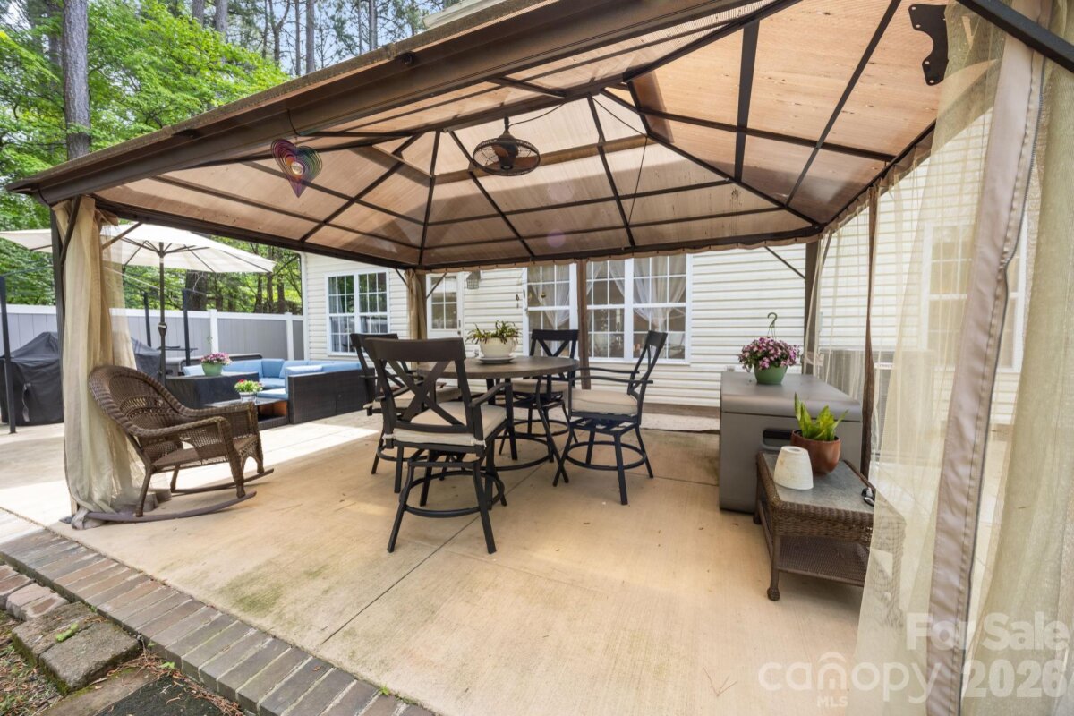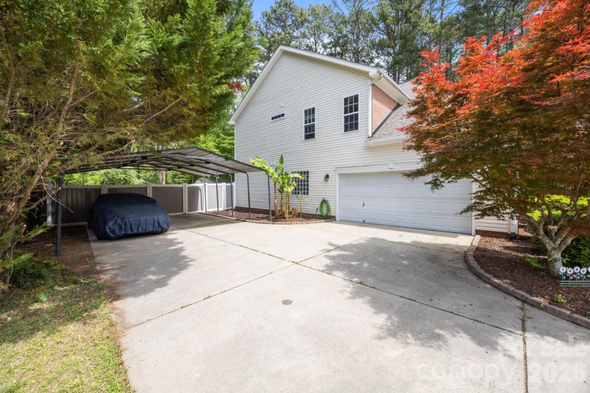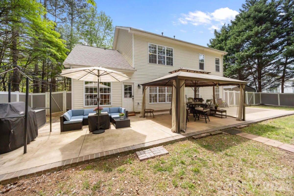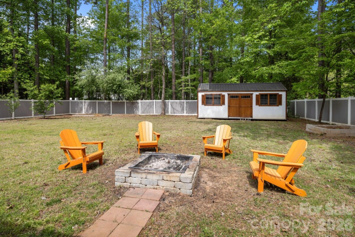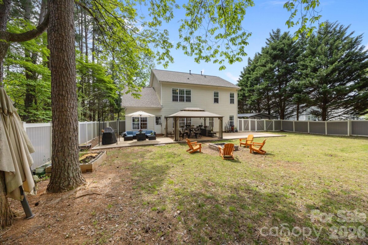 No HOA! This beautifully updated 5-bedroom, 3.5-bath home offers a highly desirable layout with a spacious main-level owner’s suite featuring a walk-in closet, dual vanities, and a stunning custom walk-in shower. The main level also includes a living room and a dining room/flex space, providing versatility for both everyday living and entertainingssThe renovated kitchen is equipped with elegant quartz countertops, stainless steel appliances, and an exterior-vented hood—perfect for cooking and gathering. Upstairs, you’ll find three additional bedrooms along with a versatile bedroom/bonus room that includes a private full bathroom—ideal as a second owner’s suite, guest retreat, or flex space. Enjoy outdoor living in the large, private backyard with custom fencing already prepared for a future swimming pool. The expansive brick-lined concrete patio (16’x60’) spans the full width of the home and includes a 12’x16’ gazebo and a spacious firepit area—perfect for entertaining or relaxing. A solar-powered 12’x24’ wooden storage shed adds both convenience and charm. The extended driveway leads to a two-car garage along with an additional 20’x20’ double carport, offering ample parking. Recent updates include a new roof (2023) and new furnace and water heater (2022). Conveniently located near I-77 with easy access to shopping, dining, and everyday amenities.