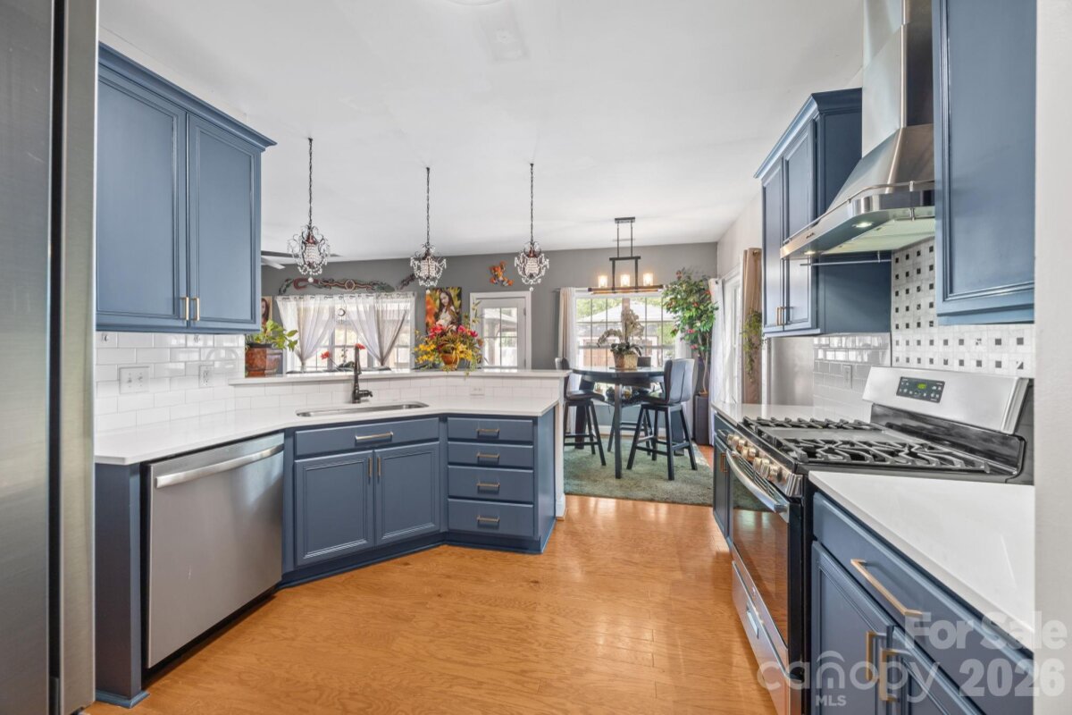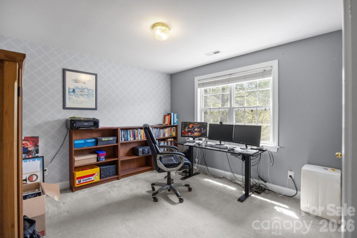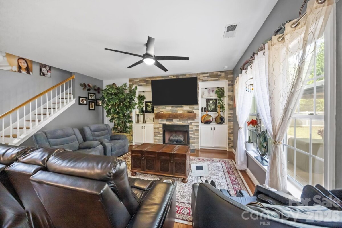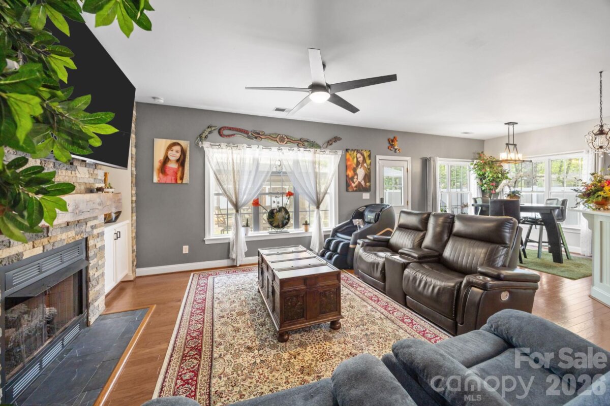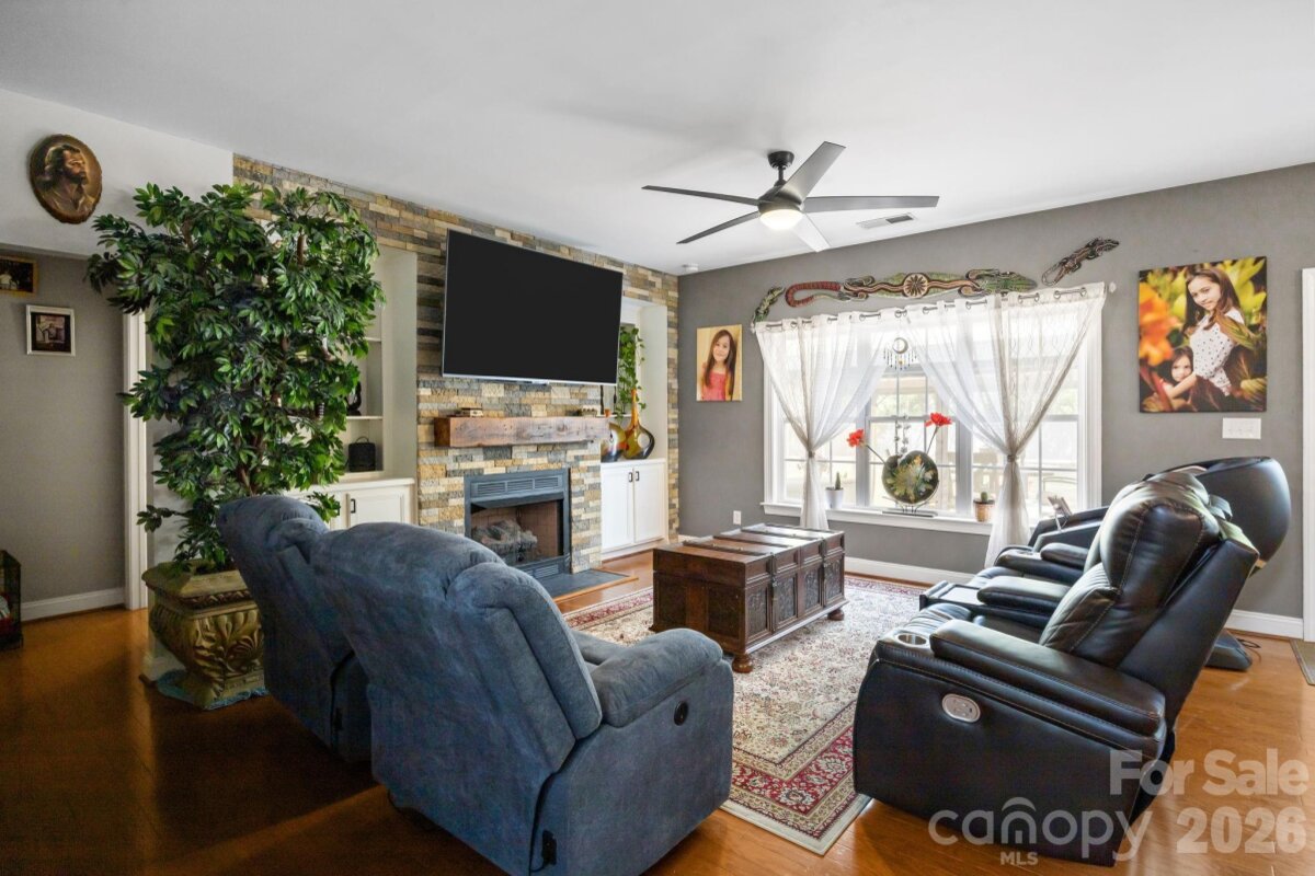 No HOA! This beautifully updated 5-bedroom, 3.5-bath home offers a highly desirable layout with a spacious main-level owner’s suite featuring a walk-in closet, dual vanities, and a stunning custom walk-in shower. The main level also includes a living room and a dining room/flex space, providing versatility for both everyday living and entertainingssThe renovated kitchen is equipped with elegant quartz countertops, stainless steel appliances, and an exterior-vented hood—perfect for cooking and gathering. Upstairs, you’ll find three additional bedrooms along with a versatile bedroom/bonus room that includes a private full bathroom—ideal as a second owner’s suite, guest retreat, or flex space. Enjoy outdoor living in the large, private backyard with custom fencing already prepared for a future swimming pool. The expansive brick-lined concrete patio (16’x60’) spans the full width of the home and includes a 12’x16’ gazebo and a spacious firepit area—perfect for entertaining or relaxing. A solar-powered 12’x24’ wooden storage shed adds both convenience and charm. The extended driveway leads to a two-car garage along with an additional 20’x20’ double carport, offering ample parking. Recent updates include a new roof (2023) and new furnace and water heater (2022). Conveniently located near I-77 with easy access to shopping, dining, and everyday amenities.