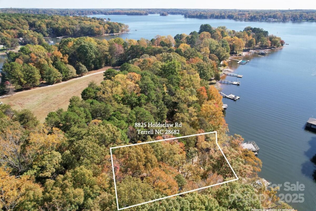 A beautiful Lake Norman opportunity awaits at 8825 Holdsclaw Road in Terrell! Tucked along a quiet private road with no HOA, no discoverable restrictions, this wooded waterfront lot offers exceptional flexibility for your future lake retreat or investment project. With approximately 120 feet of shoreline and a gently sloping contour, the property provides an ideal topography for a basement or walk-out style home. Nestled in a peaceful cove setting, you’ll enjoy calm waters perfect for swimming, paddleboarding, or simply relaxing at the water’s edge. A permitted dock with an upper deck already extends into good-depth water, offering immediate access to boating and recreation. Rip rap has been installed along portions of the shoreline, adding both stability and value. The lot is nicely wooded, offering natural privacy and a mature landscape that can be selectively cleared to frame your future home and maintain a natural lake-lifestyle feel. A camper currently on the property will be removed prior to closing. This unique parcel is one of the few remaining undeveloped waterfront lots in the growing Terrell/Sherrills Ford corridor—a highly desirable area experiencing rapid residential and commercial growth while maintaining its relaxed lake-town charm. You’ll be minutes from the Publix-anchored Village at Sherrills Ford, local restaurants, marinas, and convenient access to Highway 150, connecting you quickly to Mooresville, Denver, and Charlotte. This property’s freedom from HOA oversight allows you to design and build your ideal lake home—your choice of builder, your design, your lifestyle. Enjoy evening sunsets from the dock, weekend boat rides, or tranquil mornings surrounded by nature and the gentle sounds of the water. With nearby amenities and ongoing development in this corridor, the potential for both lifestyle enjoyment and long-term investment appreciation is outstanding. Whether you’re looking for a full-time residence, a weekend getaway, or a property to hold and build later, 8825 Holdsclaw Road delivers the perfect combination of privacy, usability, and location. Lake Norman waterfront lots with this much potential—and this level of flexibility—are increasingly rare. Don’t miss the chance to create your own vision of lakeside living on one of the region’s most sought-after stretches of shoreline.