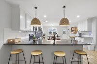This beautiful 3 bedroom, 2 bath home is perfectly situated on a spacious .83 acre lot in a peaceful country setting. Designed for comfortable one-level living, it offers the convenience of a street level double garage and a welcoming covered masonry front porch accented with warm wood columns. Inside, the light filled open floor plan features a cathedral ceiling in the great room and light vinyl plank flooring throughout, creating an airy, inviting atmosphere. The kitchen is both stylish and functional with granite countertops, stainless steel appliances, a pantry closet, and a breakfast bar ideal for casual dining or entertaining. A formal dining area with a charming board and batten accent wall adds character, while lovely light fixtures are found throughout the home. The primary bedroom easily accommodates a king-size bed and includes a private ensuite with a beautifully tiled shower and double vanity. Two additional bedrooms and a second full bath are located down the hall. A bonus room at the front of the home provides flexible space for a home office, guest room, or hobby area. Additional features include pull-down attic stairs in the garage for extra storage and a back deck overlooking the expansive fenced backyard—perfect for outdoor activities, pets, or simply relaxing and enjoying the peaceful surroundings. Come experience everything this lovely Blissfield Acres home has to offer!