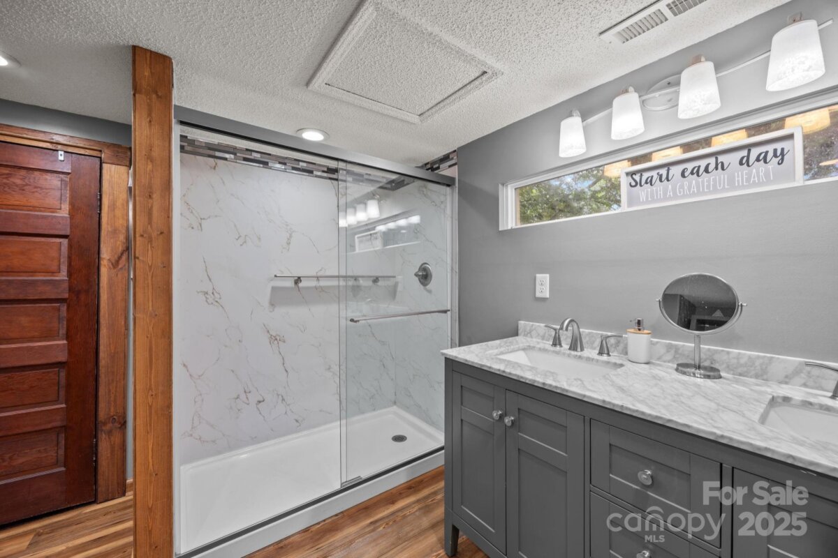 This beautiful farmhouse on 6 manicured acres is the private retreat you've been waiting for! Perfectly blending modern comfort with classic charm, this 3 bedroom, 2 1/2 bath home offers endless possibilities for relaxing, entertaining, and potentially even having your business. Inside, you'll love the gorgeous hardwood floors & thoughtful details throughout. The main level has 2 spacious bedrooms, one with en-suite half bath, a full bathroom, living room, cozy family room, and a sunroom overlooking your land. The kitchen has freshly painted cabinets, a large island, stainless steel appliances, and connects seamlessly to a gorgeous dining room with built-ins and a punched tin ceiling. Upstairs, you'll find an oversized additional bedroom, a generous WIC, a spacious updated bathroom with separate laundry room, and a flex room ideal for an office, playroom, or workout space. Step outside to your private oasis-a saltwater pool, relaxing hot tub, outdoor bar, and pool bathhouse make entertaining effortless. The 1275 sq ft detached garage is heated and cooled, offering the perfect workshop or business space. Additional perks include a double carport with storage, barn, shed, and ample parking. Ideally located outside city limits in the Carson district, this home combines tranquility, space, and convenience in one perfect package. This property truly has it all-space, privacy, luxury, and room to grow.